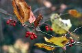 晩秋を飾る リンドウ/サルトリイバラ実/ノササゲ実/クロモジ黄葉/ゼンマイ霜/ヘクソカズラ実 ![]()