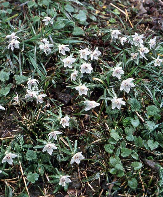 寒くて、まわりは枯れ草色なのに、どうしてこんな時期に咲くのか、不思議な花だ。 石灰岩質のところに多いが、ごく普通の畑の土手などに咲いていることもある。 土手に咲く群落です。 ↓ 兵庫県下には何ヶ所か自生地があり、ここ数年、毎年どこかに見に行っている。 この日は、前日に降り積もった雪が残っていて、雪の中のセツブンソウという ラッキーな場面に出会えた。 最近、セツブンソウの話題を見聞きすることが多くなった気がする。こんな季節に 咲く花は珍しいので、注目されるようになったようだ。 それ自体悪いことではないと思うし、まったく関心も持たれないまま開発で消えて いくよりはいい。が、過熱しすぎて“セツブンソウ園”のようになっている所も 知っているが、それもどうかと思う。 保護はいいが、自然なのだから、ほどほどがいい。 [分布]本州(関東以西) [花期]2−3月 |