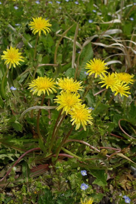 管になった茎をちぎって笛を作って、プープー鳴らしてよく遊んだものだ。 やがて大きくなって、大人向けの図鑑も読めるようになったとき、最も身近だと思っていた タンポポの花が、かつては(明治の頃?)葉の形態の違いを元に分類をしたため、 いっとき200種ほどにもにも膨れ上がって分類が混乱していた、という話を知って以外に 思ったものだった。 そう思ってタンポポの葉っぱを見ると、確かにあるある、切れ込んだものや、全く切れ込みが ないつるんとしたものまで、実にさまざまな形をしている。 今では、総苞(花の付け根の部分)の形や、地域性に着目して、カントウタンポポ、 トウカイタンポポ(ヒロハタンポポ)、カンサイタンポポ、ほか数種程度、プラス外来の セイヨウタンポポ、アカミタンポポに落ち着いているようで、これならわかる、やれやれと 思っていた。 ところが、最近になって、遺伝子や染色体数の違いを基にした新たな見解に基いた分類や、 在来種と外来種との交雑の話も聞くようになって、またややこしくなってきたようだ。 タンポポは、根っこも深く伸びるが、いろいろ奥も深い。 こんな群落もよく目にします。 ↓ [分布]本州(長野以西)〜琉球 [花期]4−6月 |
