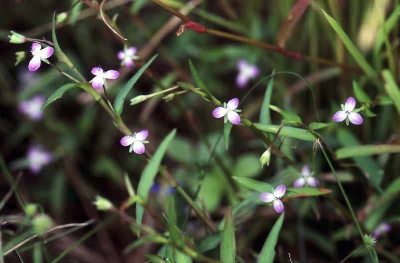 になってしまったものもある。 でも、このイボクサは今でもたくましく育ち(?)、秋の田んぼで普通に 見ることができる。 古代遺跡とロマンの里、奈良県明日香村は、今ではヒガンバナ咲く棚田の里 としても有名になった。 その明日香村にヒガンバナを目的で撮りに行ったとき、ふと、目に留まって このイボクサの写真を撮った。 多くのカメラマン達が、ヒガンバナやイベントで飾られているかかしの撮影に 夢中になっている中、ひとり、あらぬ方向にレンズを向けていたのだった。 [分布]本州〜九州、琉球、朝鮮、中国 [花期]9−10月 |