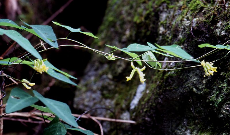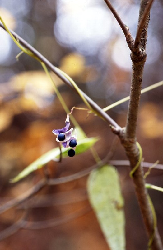 7〜8年前の秋、棚田の薮で、紫色の鞘に藍色の豆という鮮やかないでたちの実を見つけ、