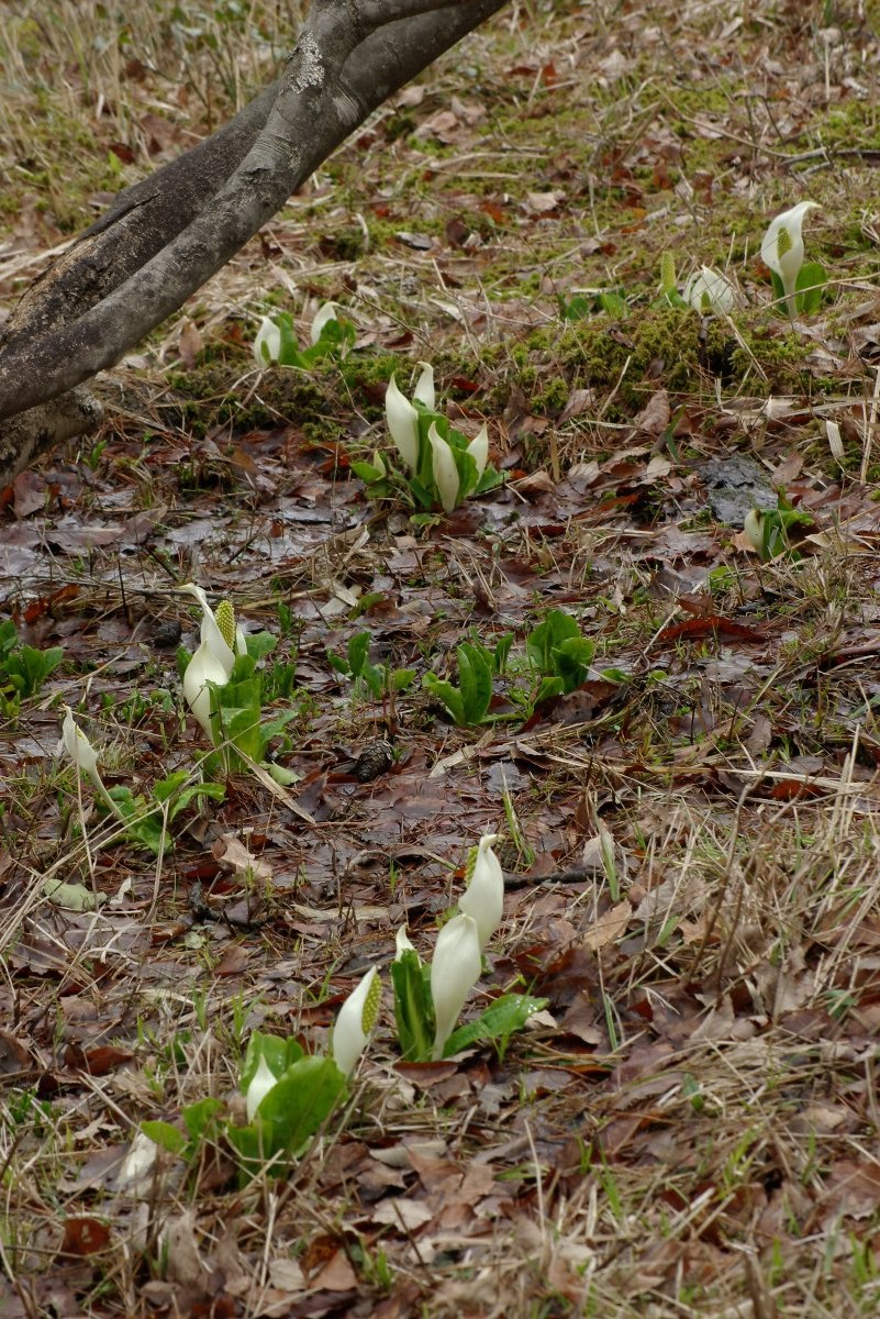 えっ?関西にも、ミズバショウの自生があるの?本当? 最初に、この自生地のことを知ったとき、正直、そう思った。 兵庫県養父市の加保坂にあるという、日本最西端のミズバショウ自生地、さっそく 行ってみた。 自生地はしっかりと管理され、フェンスで仕切られていた。ゲートを通らないと、入れない。 管理事務所で入園料を払って、ゲートへ向かう。 ゲートまでの小道に、花を植えたプランタが置いてあった。自生の保護地のはずなのに、 なぜ、花壇のごとく花を飾るのだろう?得てして、このような保護地は多い。 ゲートをくぐり林をぬけると、小規模な、やや渇き気味の湿地に行き着いた。 なるほど、小ぶりではあるが、紛れもないミズバショウが、湿地の中に咲いている。 でも、東北などで見た、群生するミズバショウのみずみずしい姿に比べたら、貧相で 勢いもない。 ここは、蛇紋岩という特殊な地層の上にできた湿地で、植物が育ちにくく、そのため、 氷河期に分布を広げたミズバショウが、かろうじて残った、ということらしい。 この写真は、2回目に訪れた時のものであるが、やはり、花は小さめだった。 「ここ、ちょっと、ボクたちミズバショウには暑いよね」 「そうだね、でも、がんばって咲いていこうよ」 そんな会話をしているようだった。 あまり密ではなく、こんな感じで湿地に咲いています。 ↓ [分布]北海道、本州(兵庫以北) [花期]5−7月 |