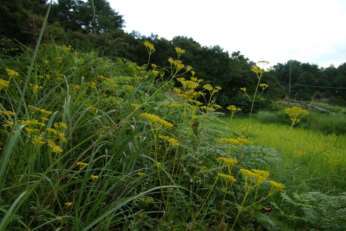 夏の終わりから、秋にかけて、田んぼの土手を鮮やかに黄色に飾るオミナエシ。