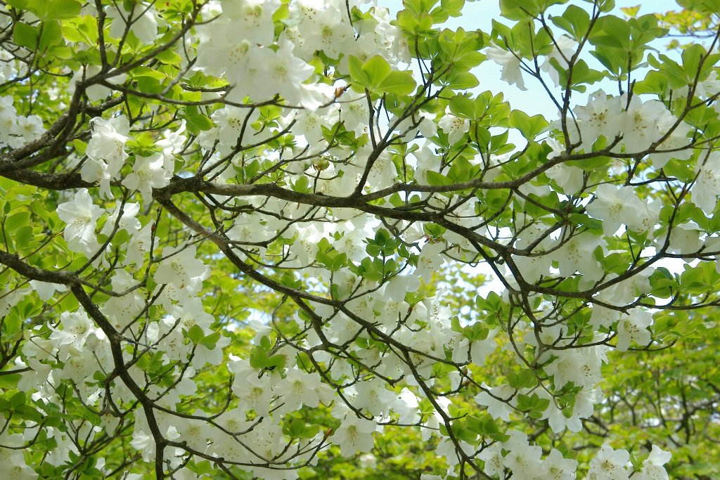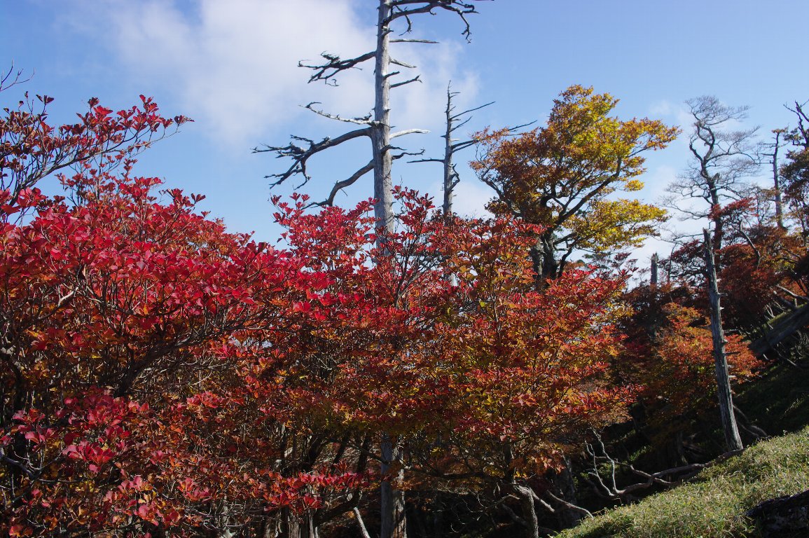 初夏の頃、真っ白な花をたわわに咲かせていたシロヤシオの木々が、今は真っ赤に色づいて、
