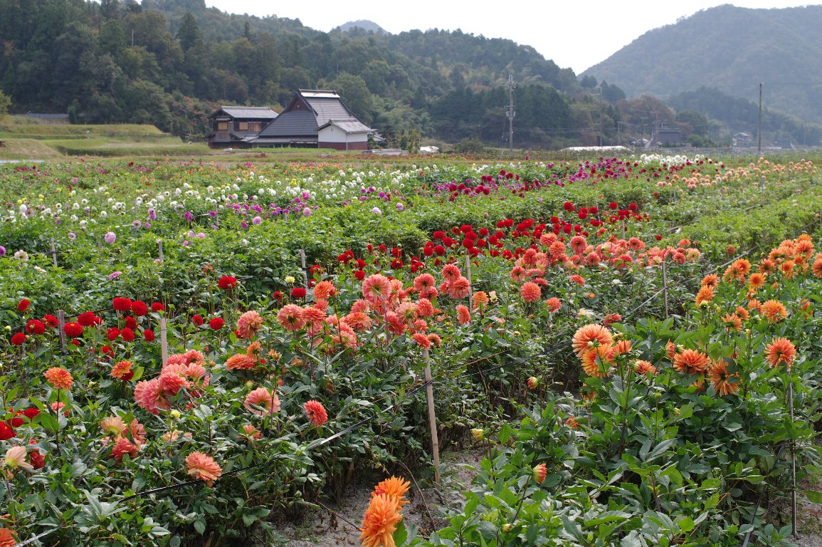 撮影雑記: 少し湿り気があって、日当たりのよい田んぼの土手には、ウメバチソウが咲くんですね。 山地で見る花が、普通の里山の田んぼにもあるのは、なんか不思議な気がします。 どこの田んぼにでもあるものじゃないですが、ウメバチソウが咲く田んぼを見つけると、 宝物を見つけた気分です。 このウメバチソウを見つけた田んぼの土手にも、見事な群落が広がっています。 でも、目で見て見事な群落も、なかなか、上手に写真が撮れません。 いつか、上手な写真が撮れたら、また、紹介します。 ウメバチソウが咲き始めたら、いよいよ秋も大詰め。 やがて、紅葉という、一年のフィナーレが始まります。 おまけ情報: ところで、このウメバチソウを撮った場所から、少し離れたところに、ダリアの栽培が 盛んなところがあります。 聞く所によると、宝塚市は、日本一のダリアの産地だとか(でも、改めて調べてみると、 奈良や山形が日本一との記述もあり、真相は謎です)。 ![]() 今頃は、このようなダリア畑が広がり、目を楽しませてくれるほか、200円ほどで ダリアを摘ませてくれる、花摘み園もあります。 |