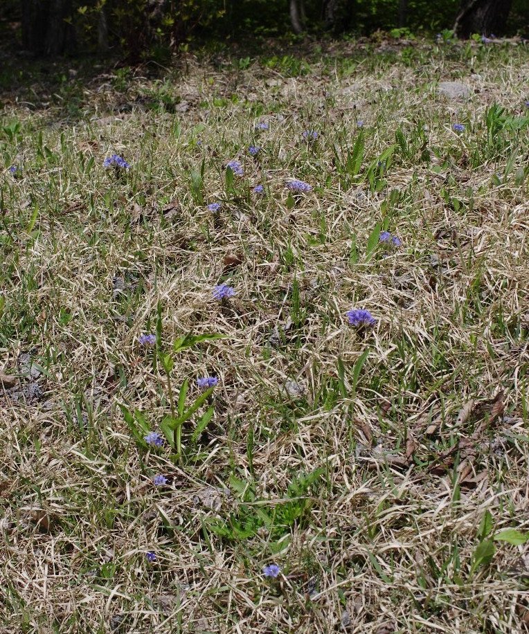 春に咲く小さなリンドウ、フデリンドウは、草や枯葉の間に埋もれるように咲くので、