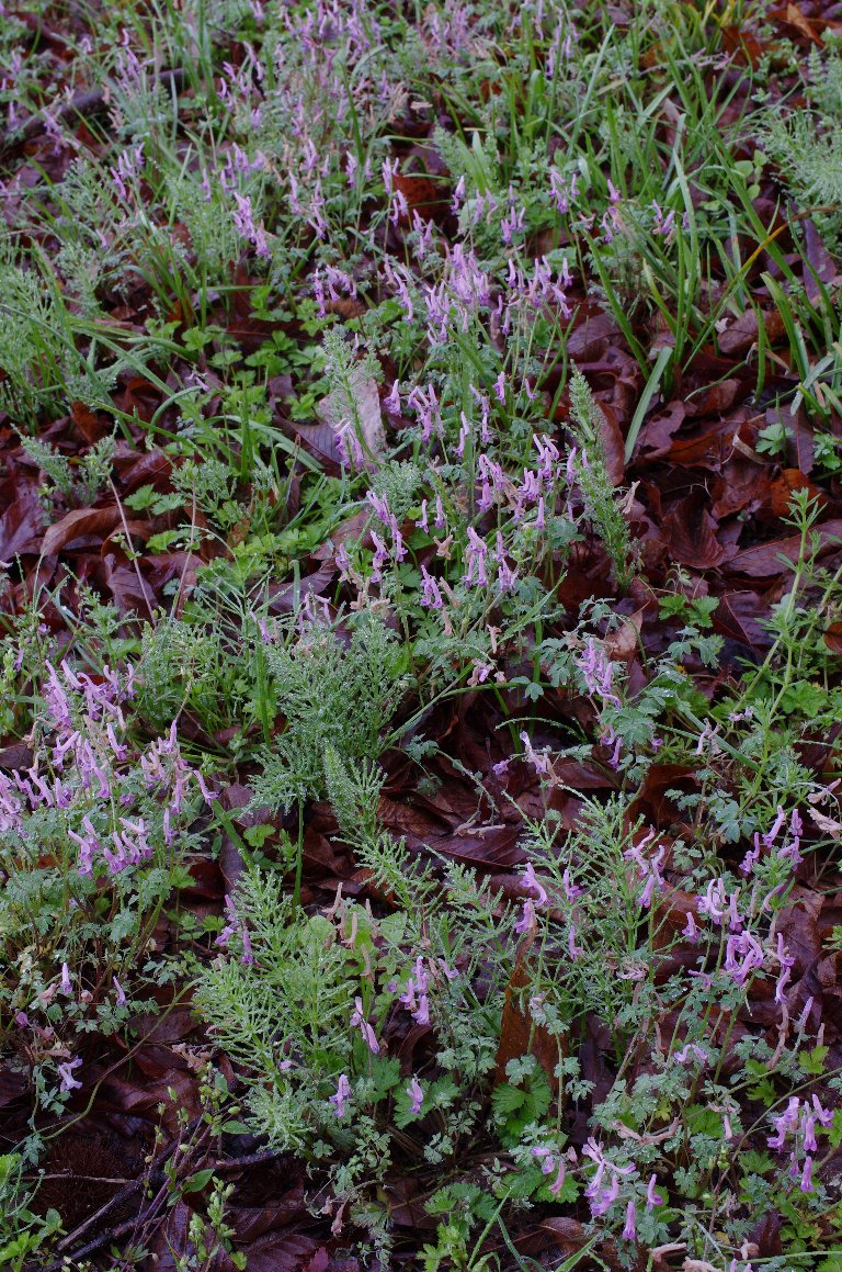 ジロボウエンゴサクの花の群生だ。 こんなにたくさん、まとまって咲いているのを見るのは、初めてだった。 |
