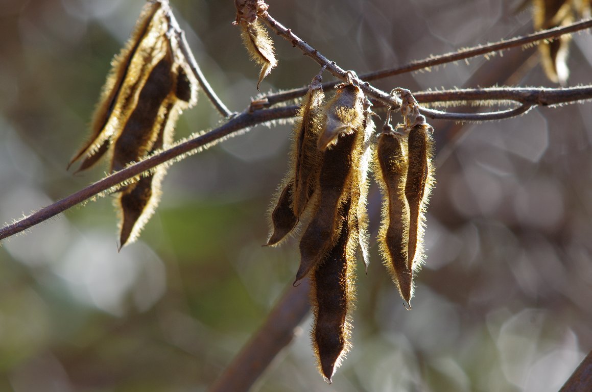 この秋はクズの実りが良かったのだろうか、クズ豆のさやが、あちこちの