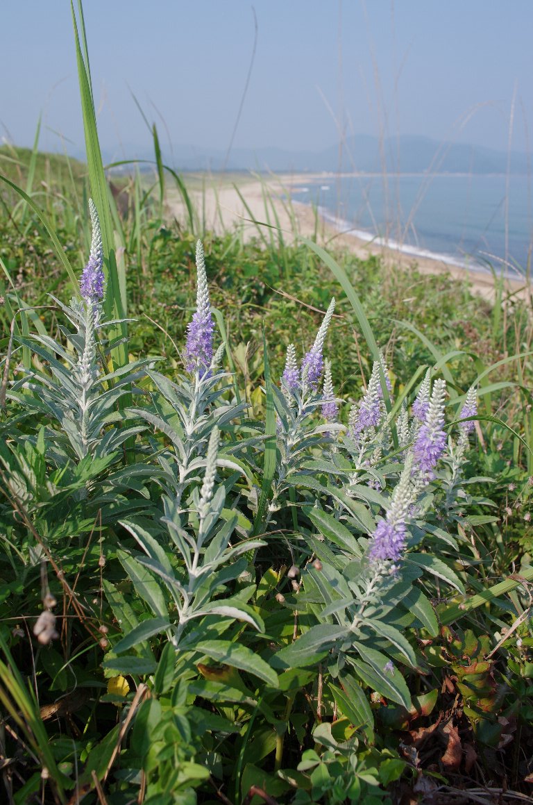 日本海の海岸に咲くトウテイランに、今年も見たくなって、足を延ばす。 花期が長いので、いいタイミングに合うのが難しい。 この時は、タイミングはばっちり。朝日に光る花穂がきれいだった。 |