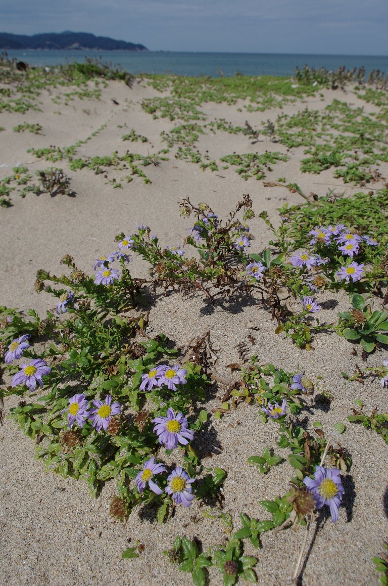 撮影雑記: 丹後の海岸は、自然が多く残っており、季節ごとにいろんな花が咲くので、毎年、何回か訪れます。 初秋の頃は、ハマベノギクが、いちばんいい季節です。 砂浜に広がって、気持ちよさそうに咲いています。 ![]() 一見、気持ちよさそうですが、海岸は厳しい環境なので、当のハマベノギクは、大変でしょうね。 でも、薄い青紫の大きめの野菊の花は、いつみても、きれい。 そのハマベノギクは、ヤマジノギクに近い仲間です。でも、ヤマジノギクの方が、あまり見る機会がありません。 |