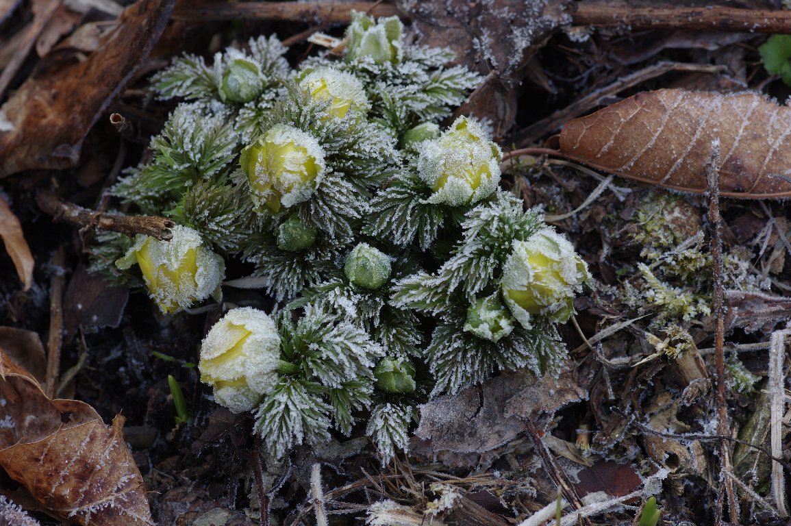 撮影雑記: 広島県庄原市の為重地区にフクジュソウ(ミチノクフクジュソウ)の自生地があり、一般公開しているのをネットで 知ったのは、2、3年前でしょうか。 でも、広島だし、遠いし、行けないなあと、思っていました。 2014年の3月15日、三瓶山まで一泊旅行に行くことにしたので、ちょっと時期が早いのですが、途中、寄ってみることに しました。 朝10時前に着いたのですが、なんと、ミチノクフクジュソウは、びっしりと霜に覆われていました。 ![]() 自生地は、川沿いの西向きの斜面で、けっこう、広い範囲です。でも、まだ、日が当たっていません。 少し待つと、徐々に日が当たり始め、霜も融けて、花も開いてきました。 しかし、やはり、全体的には咲き始めで、ネットに紹介されているような一面のフクジュソウには、 ほど遠いものでした。 これは、日を改めて、また、訪れるしかない! というわけで、およそ2週間後、思い切って、再び訪れてみました。今度は、日帰りで。 曇りのち晴れの予報でしたが、なかなか雲が取れなかったので、ゆっくりと、昼過ぎに現地に着いてみると…。 咲いていました! 大きな株、小さな株、満開の花がいっぱいに、土手一面が黄色く染まっていました。 ![]() 予想以上に、いい感じに、たくさんのフクジュソウが咲いています。 夢中で、写真を撮りました。 ![]() 遠いと思っていた広島も(といっても、広島県の東の端ですが)、来てみれば、なんとかなるものです。 ついに、広島県までが、日帰りの花散策エリアになりました。 この1か月後、別の花を探しに、再び、広島まで日帰りすることになるのでした。 |