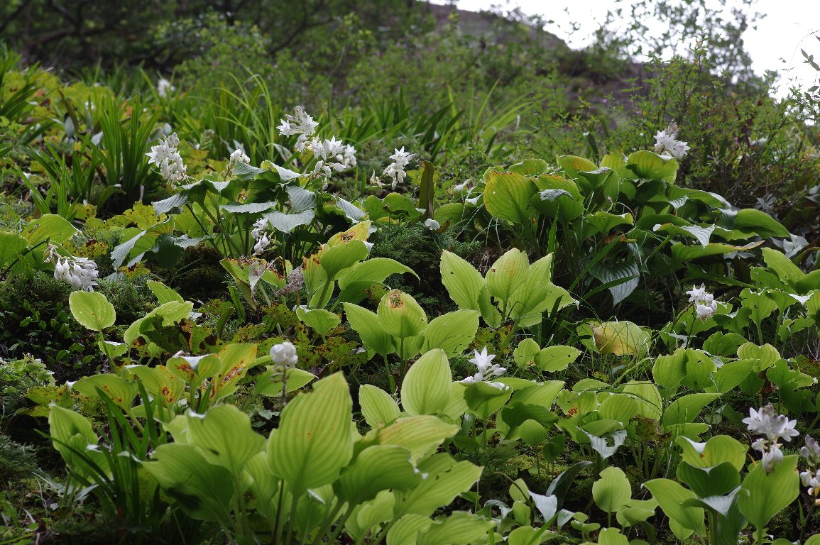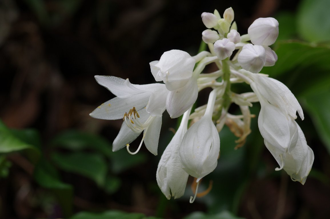 紀伊半島や四国の谷は急峻で、湿度も高い。そんな環境にだけ分布する花が何種かある。 岩場から、垂れ下がるように咲いているウナズキギボウシも、その一つ。 他では見られない、優雅な花の姿だ。 |