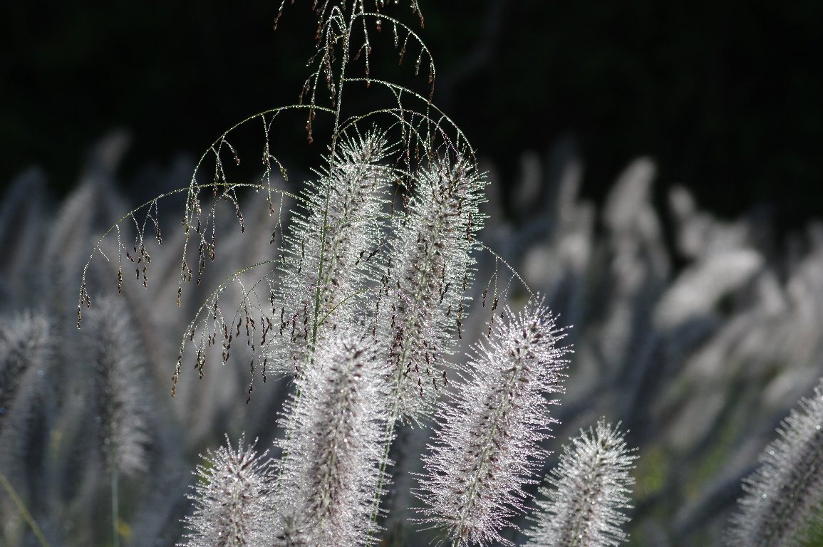 撮影雑記: 晩秋の楽しみの一つが、早朝の露に濡れた草花の姿を撮ることです。 中でも、イネ科の仲間が、いつもと全然ちがう表情を見せてくれます。 そろそろ、布団から出づらくなる朝、少しがんばって早起きして、近くの里山を訪れました。 期待通り、休耕田に広がったチカラシバの群落が、朝露をびっしりまとっていました。 きれいに撮れるタイミングは、朝日が当たりだしてから、せいぜい、10〜20分程度でしょうか。 ちょっとずつ変わる光線を追って、忙しい撮影となります。 今回の出来栄えはいかがでしょうか? こちらは、少しアップのチカラシバ。次に紹介するヌカキビとの共演です。 ![]() |