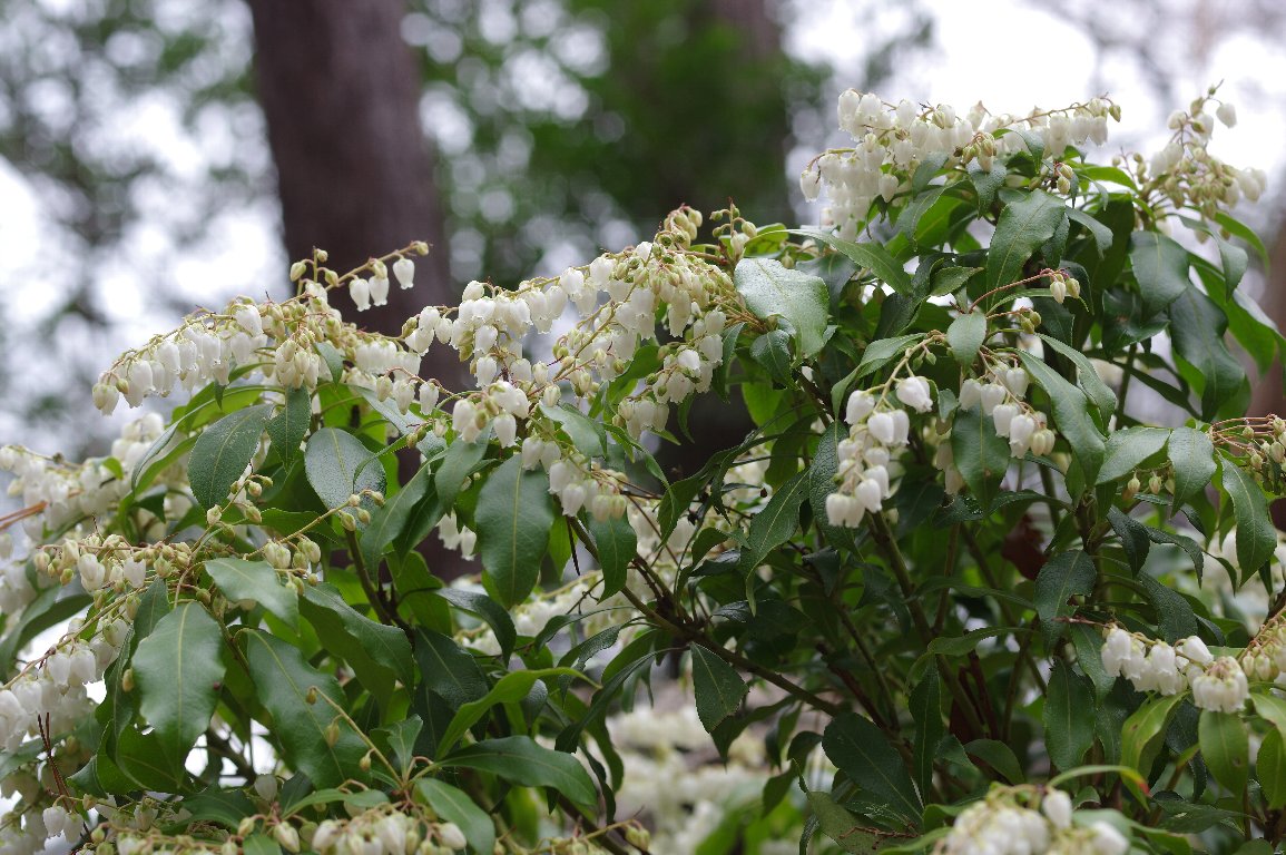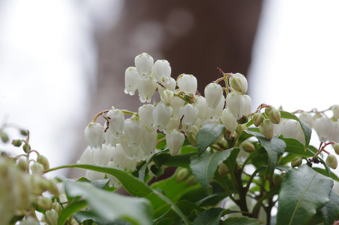 年も押し詰まった頃、真冬の山に咲いていたのは、なんと、アセビの花。 春先に咲く花ではあるけど、いくら暖冬とはいえ、こんな時期に、なぜ? 見ると、木が根元から折れていた。おそらく、最後の力を振り絞って咲いたのだろう。 花は、神々しいまでに白かった。 |