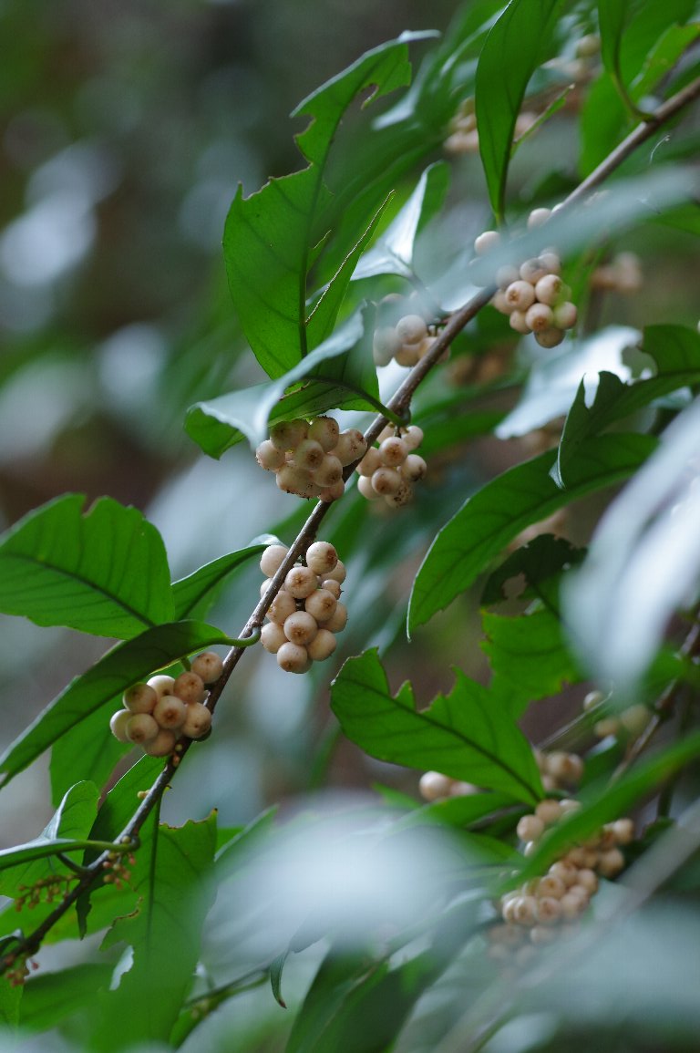撮影雑記: イズセンリョウは、西日本の山地に普通にあるもので、冬の時期に山に分け入れば、 たいてい出会うことができます。 そのため、意識して撮りに行くことがなかったので、これまで、あまりいい写真が撮れて いないことに気づきました。 よし! この冬、帰省したら、イズセンリョウの白い実を撮ろう。 そう思って、正月3日、実家近くの山の林道に、車で分け入って行きました。 目指す自生場所は、この林道をずっと登った先。 と思って、カーブを曲がると、思いがけず、白い実をたわわに実らせたイズセンリョウ数本が、 道端に群生しているではないですか。 ![]() これは、もう、山の奥まで行く必要はありません。 時間もあまりなかったので、助かりました。ここで、じっくりと撮影しました。 日本の山に自生する木の実は何種類もありますが、赤い実がほとんどです。 イズセンリョウのように、白い実を付けるものは、かなり珍しいと思います。 ナンテンやマンリョウなど、色変わりで白い実を付ける園芸種はありますが、もともとの色が 白というのは、イズセンリョウくらいじゃないでしょうか。 これだけ珍しいものなのに、なぜか、イズセンリョウはあまり知られておらず、生け花などに 使われることもありません。 赤い実と白い実とセットにしたら、おめでたいと思うのに。 イズセンリョウの実の色は、純白と言うほどは白くなく、微妙に赤みがかっています。 そのせいもあるのでしょうか。 そんなイズセンリョウですが、真冬のさなか、薄暗い林の下に実る白い実を、もっと、 愛でてあげてもいいんじゃないかと思います。 ![]() ところで、イズセンリョウも花を付けますが、地味な花です。 季節は、初夏のころ。 何度か写真に撮ったことはありますが、やっぱり、何かのついでに撮る感じなので、 これはという写真が撮れてません。 いい写真が撮れたら、また、ここにアップしたいと思います。 |