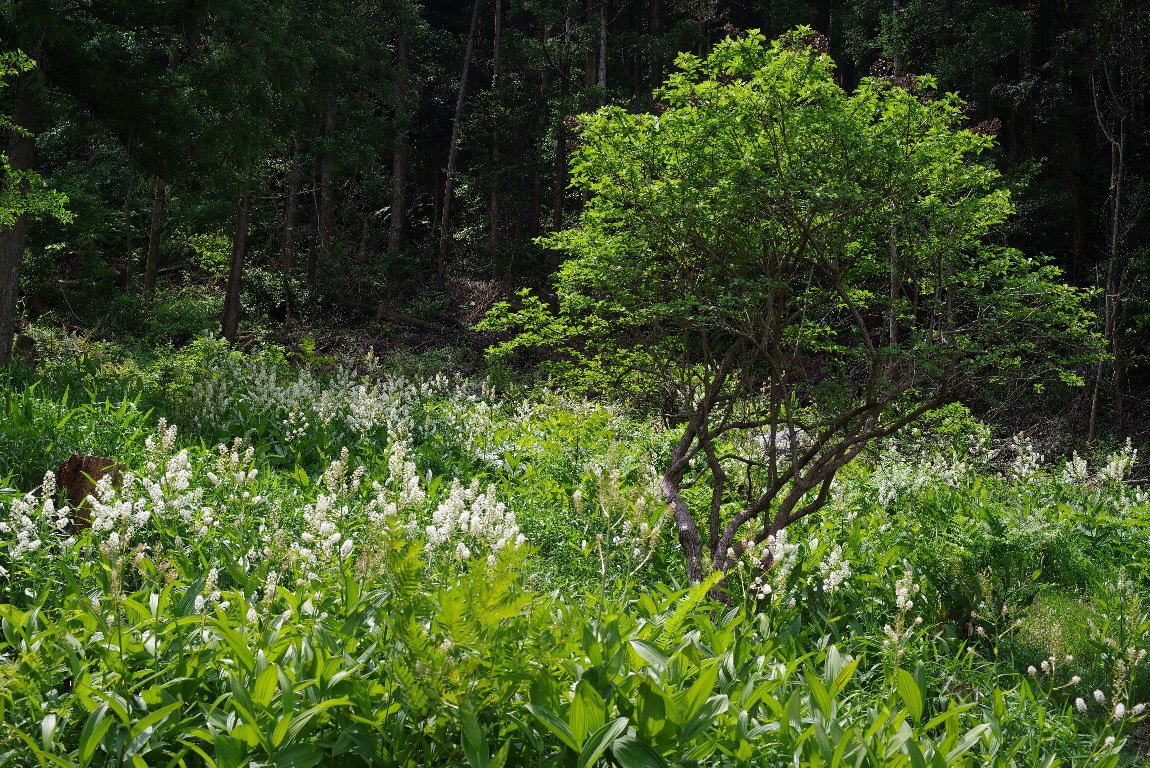 久しぶりに訪れた、愛知県の葦毛湿原の奥ににある、ミカワバイケイソウ群生地。 木々が切り払われて、以前より、広い範囲が保護されていた。 少しピークは過ぎていたが、白い花が群れ咲く様子を見ることができた。 |