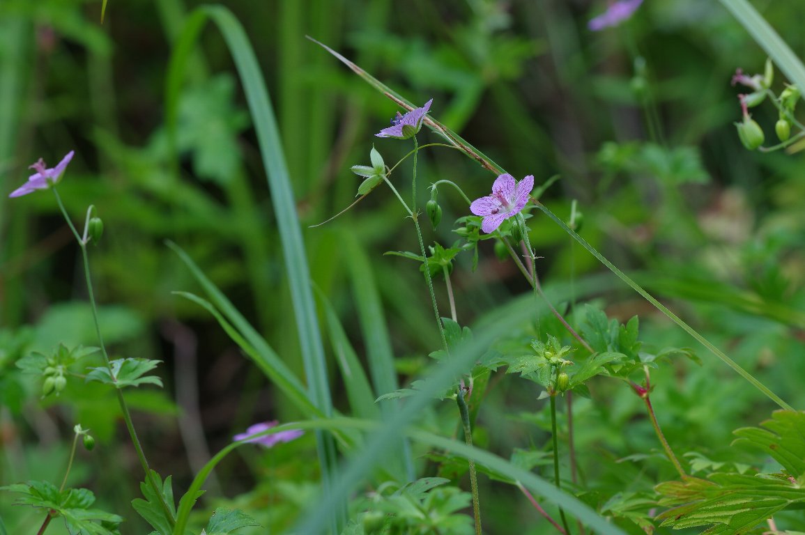 むっとする夏の湿原の草むらの中に咲いていたのは、ビッチュウフウロ。 フウロは、風露と書く。まさに、風にそよぐ、涼やかな花だった。 |