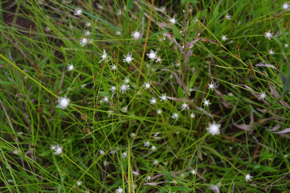 ため池の水ぎわが湿地になっていて、イトイヌノヒゲの花が咲いていた。 星草の仲間。水辺の草むら広がる、ちいさな、ほしぞら。 そっと、すくい取るように、写した。 |