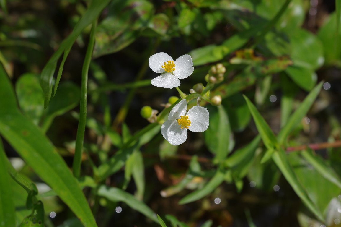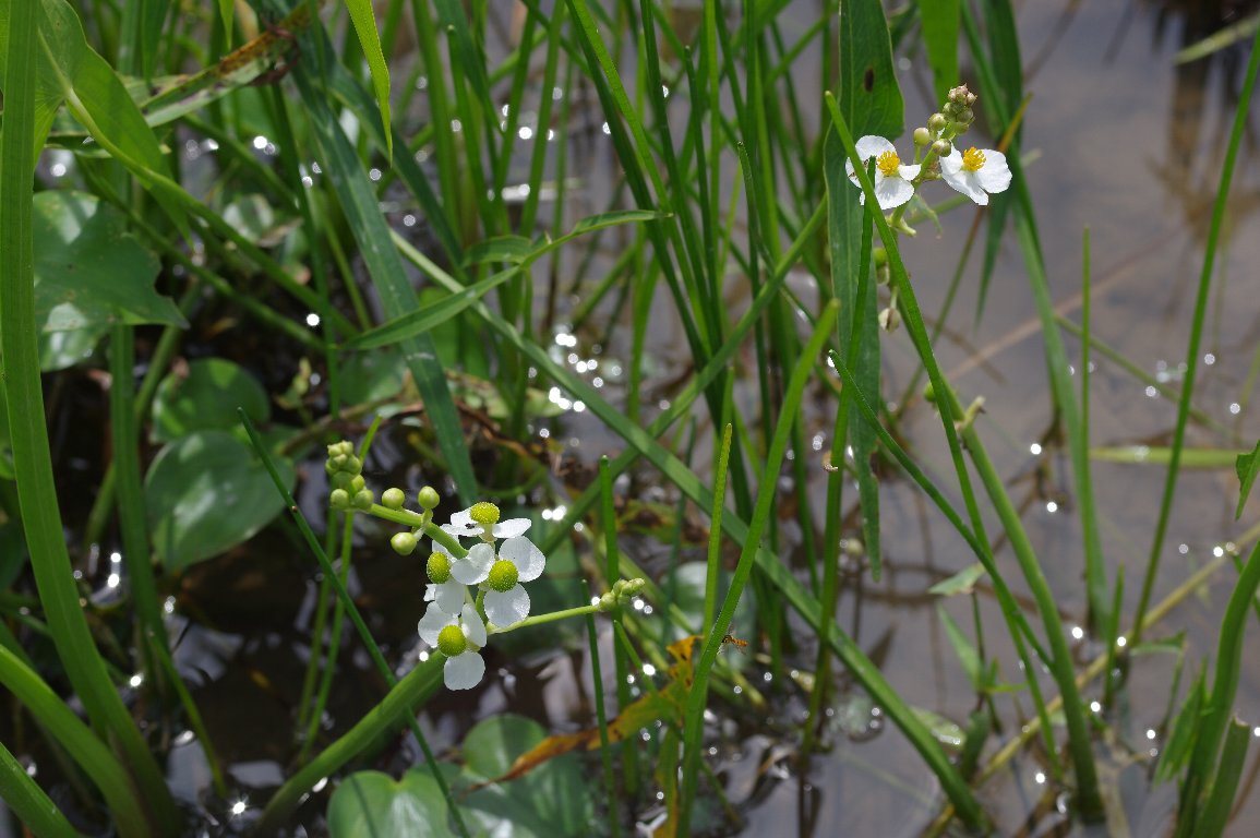 アギナシは、田んぼの雑草。 でも、白い花はきれいで、爽やかさえ感じる。 ここの田んぼは、湿地に隣接した、公園の一部。こんな雑草も自由に花を咲かせられる。 |