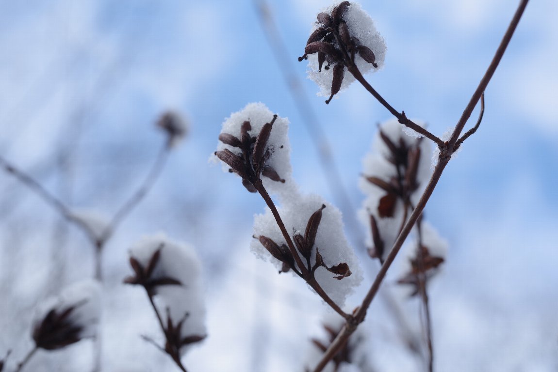 撮影雑記: 宝塚に住むようになって、隣の篠山や三田が、意外と雪が多いことに、最初は驚きました。 昨シーズンの冬は、特に、雪が多くて、12月末から、早や、雪景色が見られました。 生まれ育った愛知県東部は、雪の少ないところで、年に2回ほど、ほんの数センチ積もる程度 でしたので、未だに、雪景色を見ると、ワクワクします。 いろんな木や草に積もった雪も、おもしろいです。 中でも、枯れ残ったタニウツギの実のさやは、上向きに広がった形をしているので、 そこに雪が積もると、かき氷のような、ソフトクリームのような、かわいい形になります。 アップで見ると、こんな感じ。 ![]() 少し引くと、こんな感じです。 ![]() ちいさな、雪のソフトクリームが、いっぱいですね。 |