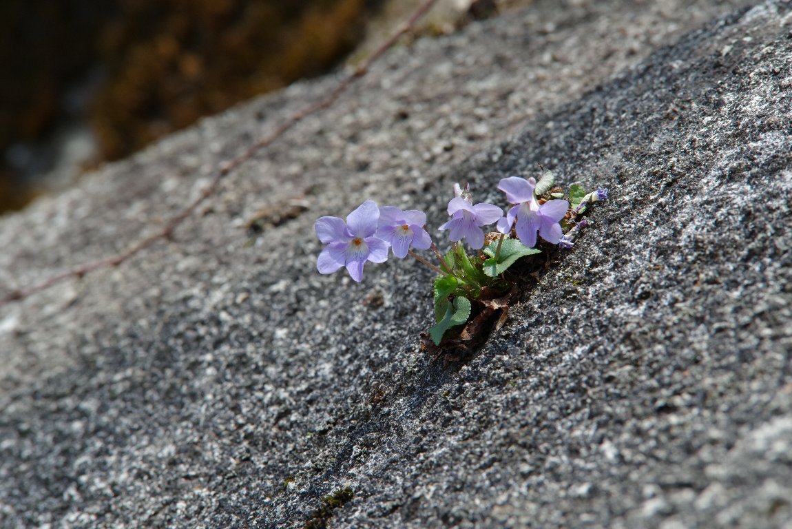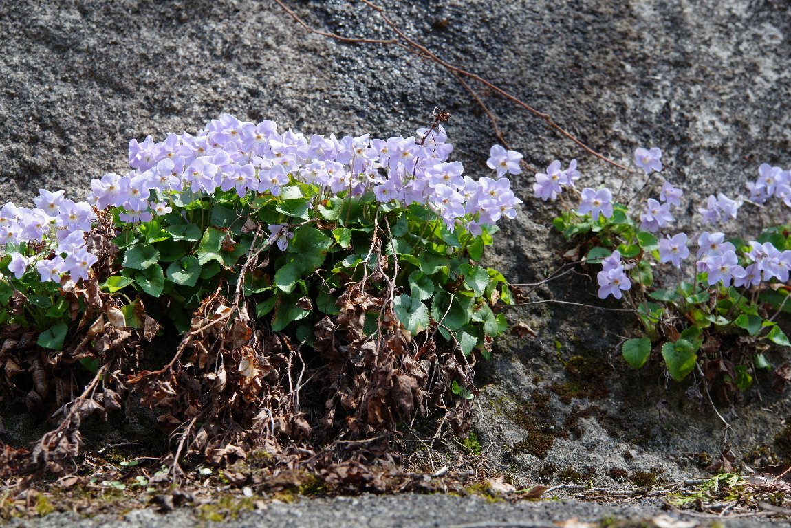 撮影雑記: 道路のコンクリートの吹き付け斜面に、ブーケのように咲いているタチツボスミレに出会いました。 少し高いところなので、ちょっと、近寄れません。 そのおかげで、毎年、のびのびと花を咲かせ続けて、こんなに、大きな株になったのでしょう。 下の方に枯れ残った前年の葉っぱが、それを、物語っています。 少し引いた写真です。 こんな感じで、コンクリートの隙間?から咲いています。 隣に、小さめの株もあります。 ![]() こんな、小さな株も咲いていました。 ![]() 最初は、こんな、小さな株だったのが、ちょっとずつ、ちょっとずつ成長して、トップの写真のような 大株に育ったんでしょうね。何年も、かけて。 コンクリートの隙間から根を伸ばしているのか、それとも、わずかなくぼみに根が張っているだけなのか、 それはわかりません。 自らの、枯れた葉っぱを養分にして、育っていったんでしょうね。 |
