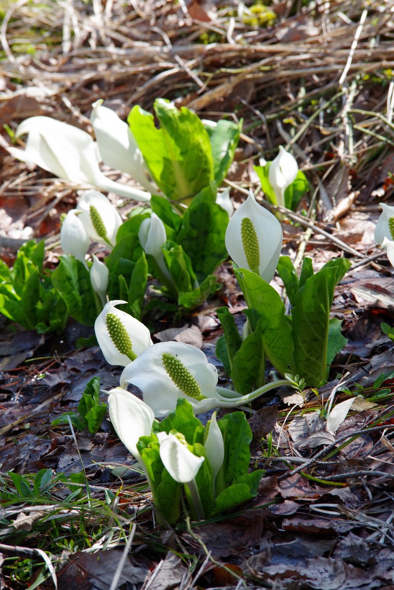 日本南限の自生とされる、加保坂のミズバショウ。 訪れたのは、もう、何回目だろうか。でも、今回が、いちばん花付きが良いようだ。 白い花に、少し西に傾き始めた陽射しが射して、透き通るようにきれいだった。 |