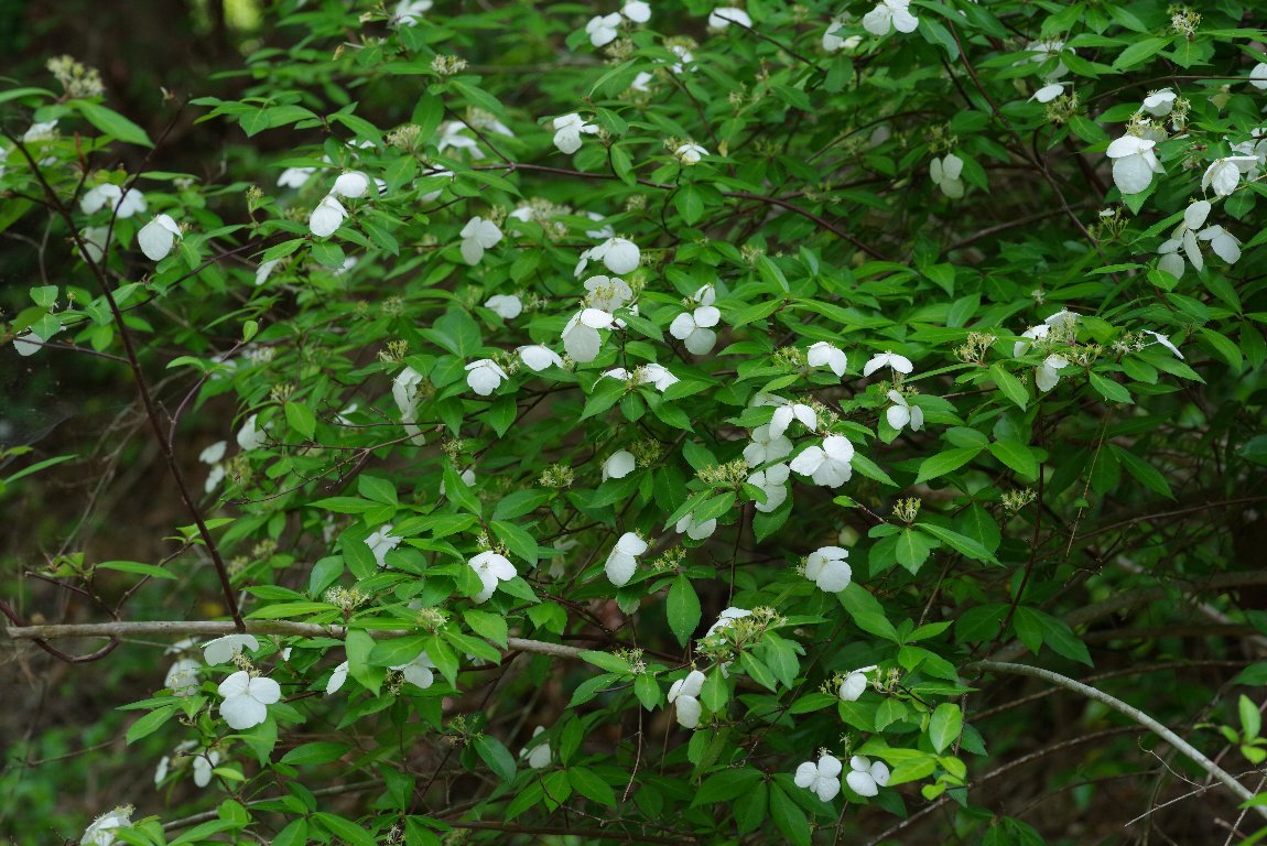 公園や街の植え込みでは、華やかにアジサイの花が咲くころ、やぶの中では、コガクウツギが、