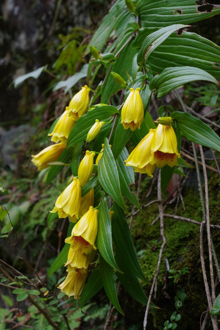 撮影雑記: 奈良県の山奥の川沿いに、キイジョウロウホトトギスを探しに行きました。 夏に、シチョウゲ(<2018年8月>(立秋)) を撮りに行った時、目星を付けていた場所に 行ってみると…。 咲いていました! けっこう、大きな株です。 ![]() でも、立派な花を付けていたのはこの株だけで、他の個体は、ほとんど花が付いておらず、 崖から葉っぱがぶら下がっているだけでした。 少し場所を移すと、こちらは、道端の崖に咲いているのですが、落石防止の金網越しに なってしまいます。 それでも、撮ってみれば、案外面白い絵になりました(冒頭の写真)。 こちらは、ほとんど、足元に咲いていた、かわいらしい個体。 やっぱり、金網越しです。 ![]() 和歌山県の、道路沿いの険しい岩場に、見事に群生する場所があるのですが、こちらも、いつの間にか 落石防止の金網が張られてしまい、金網越し咲く姿になってしまいました。 そんな場所が、年々増えています。 残念な気がしますが、当のキイジョウロウホトトギスは、まるで意に介さず、元気に咲いています。 |