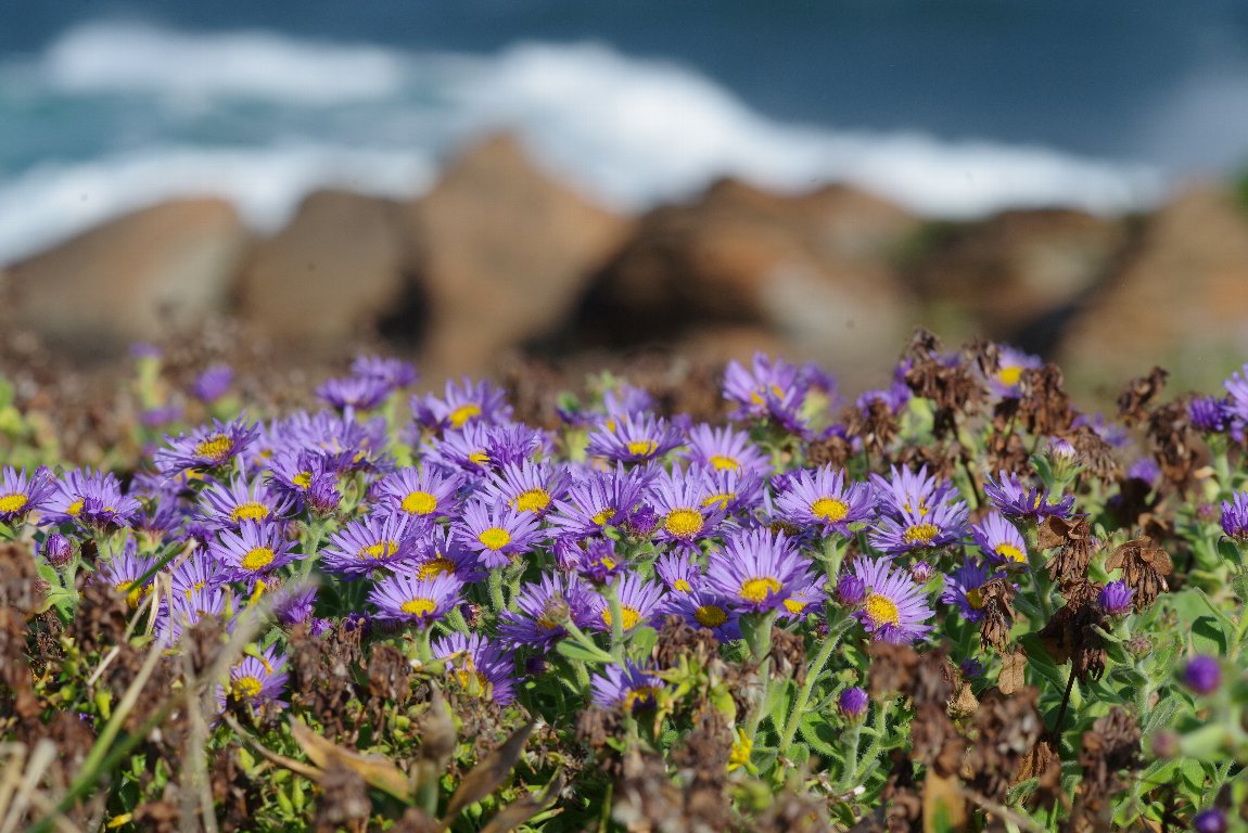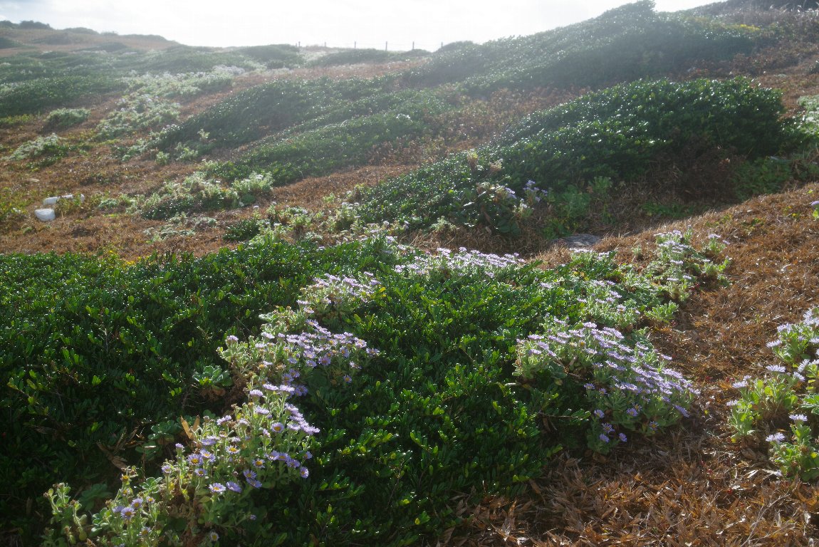 思い立って、本州の最西端の角島に、ダルマギクを見に行った。 自生地の海岸を散策したが、思い描いたような大きな群落ではなかった。 突然の時雨にも見舞われ散々だったが、ダルマギクは微笑んでくれてた気がする。 |