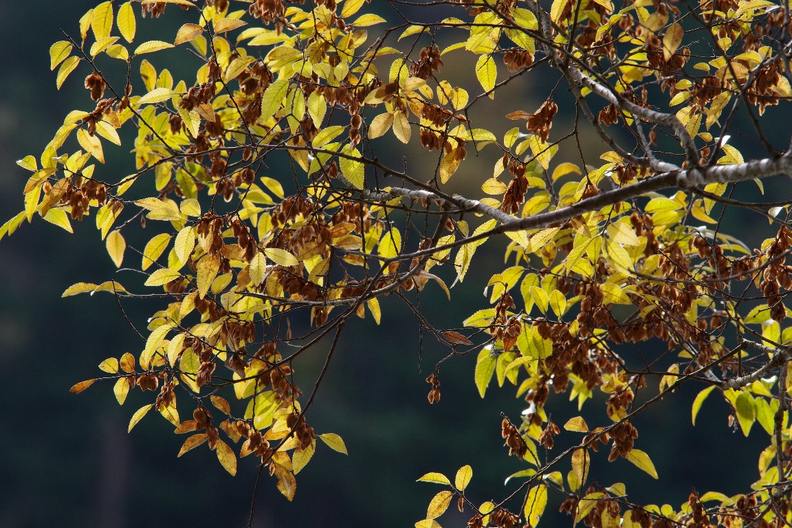 きょうは、武田尾で植物写真ワークショップ。 いつもは、あまりカメラを向けないような、アキニレの木を狙う。 地味な黄葉も、こうして撮ると、渋めのおもしろい写真になる。 |