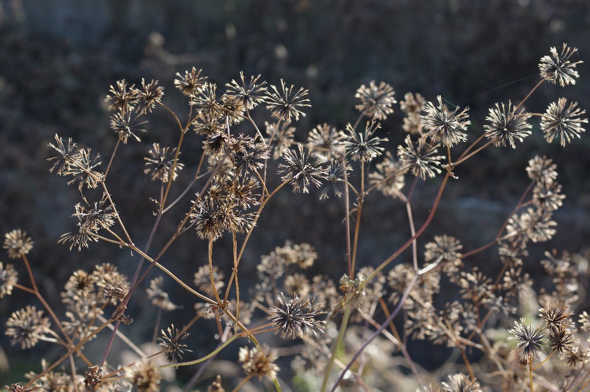 ズボンの裾に絡みつく。 コセンダングサは、その最たるものだが、まあるく、花火のように広がった実は、 被写体としても、おもしろい存在だ。 |