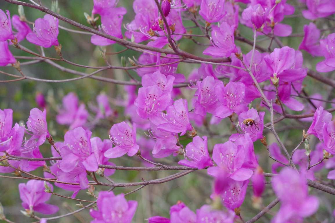 撮影雑記: この年は、数年周期で訪れる、コバノミツバツツジの当たり年のようでした。 近所の里山公園に行ってみると、林の縁が、きれいに、ピンク色に彩られていました。 ![]() 曇り空でしたが、やや青みがあるピンク色の花がきれいです。 ![]() 花付きもよいです。 近寄って切り取ると、ツリアブも写っていました。 ![]() |