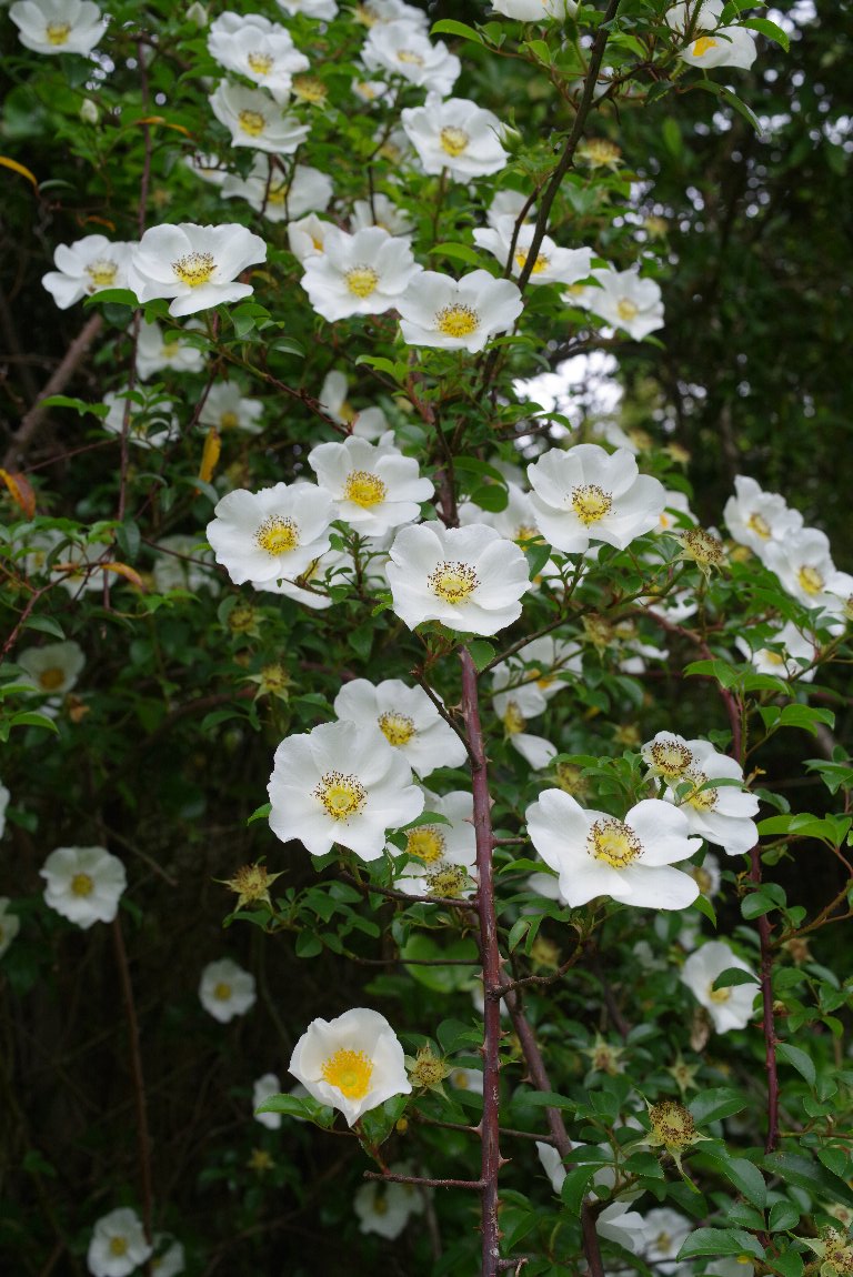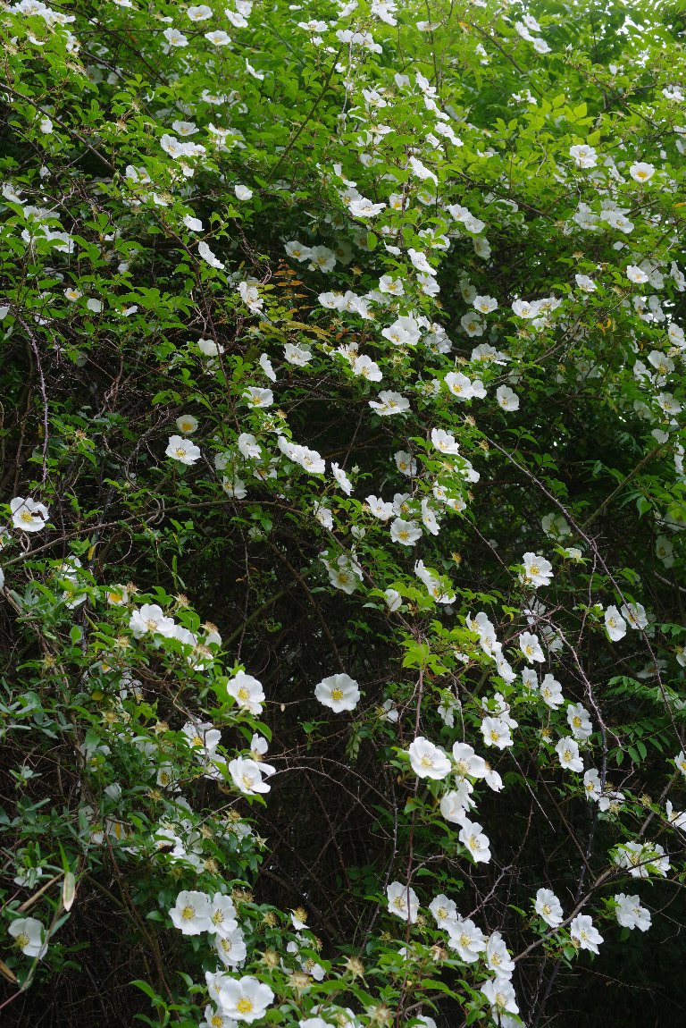 咲いていた。 帰ってから調べると、中国原産のナニワイバラで、西日本で野生化しているらしい。 |