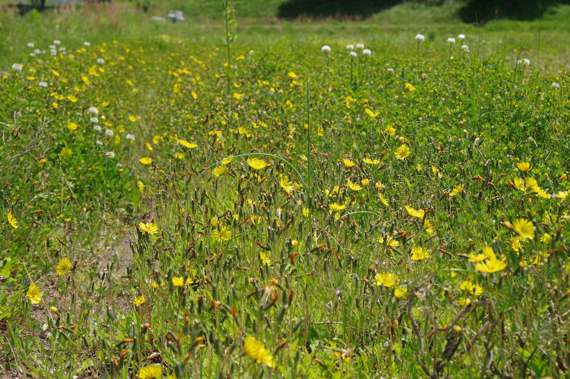 撮影雑記: ここの休耕田は、お花畑に変わってしまったのかと思うくらい、全面、花に覆われていました。 オオジシバリも、こんなに、びっしりと咲いています。 こうなると、どこを切り取って写真にするのか、かえって難しいですね。 ![]() 田んぼの中の方まで、広がって咲いています。 ![]() 休耕田の土の栄養、ほどほどの手入れ。 いろんな条件が重なって、こんな、突然のお花畑が出現したんでしょうね。 |