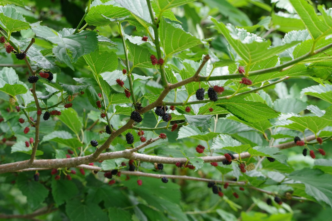 撮影雑記: 海岸から少し登った山道(林道)を歩いていると、道端にクワの実が生っていました。 いわゆるクワイチゴです。 実家は農家なのですが、子供の頃は、養蚕もしていました。 桑畑はあちこちにあり、クワの木もそこ、ここにあり、クワイチゴはなじみ深いものでした。 でも、あまり、好んでは食べた記憶はありません。 クサイチゴやモミジイチゴは少し酸味がありますが、クワイチゴは酸味のない甘い実です。 子供の私には、甘すぎたのかもしれません。 未熟な青い実から、熟しかけた赤い実、熟した黒い実が、並んで生っていますね。 ![]() 枝の下から見上げると、いっぱい生っていました。 ![]() 黒い実を、ひとつ、ふたつ、ほおばりました。 野趣あふれる、甘い味がしました。 クワイチゴは、英語で何ベリーだろう?って思って調べたら、マルベリーって言うんですね。 |