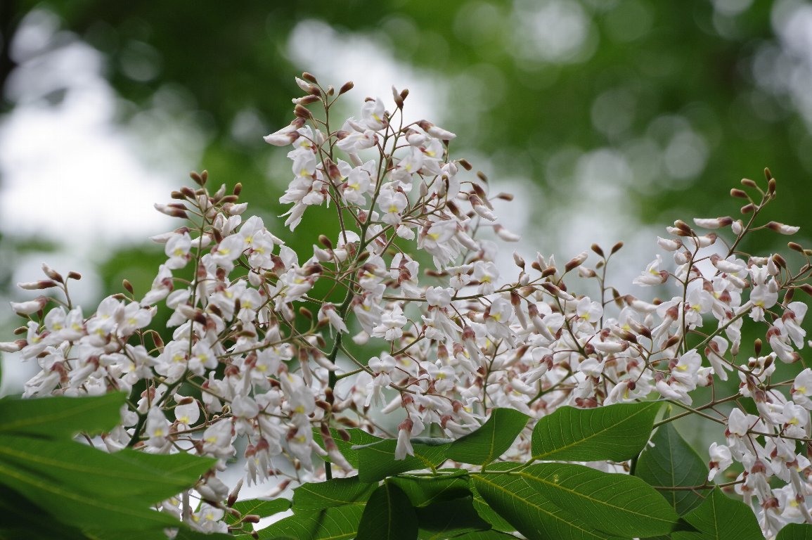 4年に一度しか咲かないと言われるユクノキだが、2年ぶりに開花した。 名前の由来(ユクノキ=雪の木)のごとく、大木に白い花がびっしり咲く姿は、 何度見ても美しい。 |