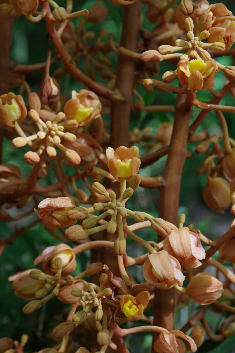 撮影雑記: 腐生植物と呼ばれる、葉緑素を持たない花が何種類かありますが、どれも、いつどこに 咲くのか予測がつかない花が多いです。 この、ツチアケビはランの仲間ですが、ナラタケというキノコと共生関係にある腐生植物です。 たまにしか見ないので、おそらく、何年か栄養を蓄えて、数年に一度、地上に花を咲かせるのでしょう。 5〜6本くらいが林立して、いっぱい花を付けていました。 こんな見事なツチアケビの花を見たのは、おそらく、初めてです。 ![]() 花のアップです。 花は順番に咲くようで、なかなか、開いている花をそろって写真に収める角度が見つけられず、撮影には苦労しました。 ![]() さて、ツチアケビ(土アケビ)の名の由来になったのは、秋に付ける実の姿からです。 果たして、秋には、どんな姿に変わっていることでしょう。 人が通る道端に咲いていたので、秋まで無事にいてくれることを祈りつつ、ツチアケビを後にしました。 |