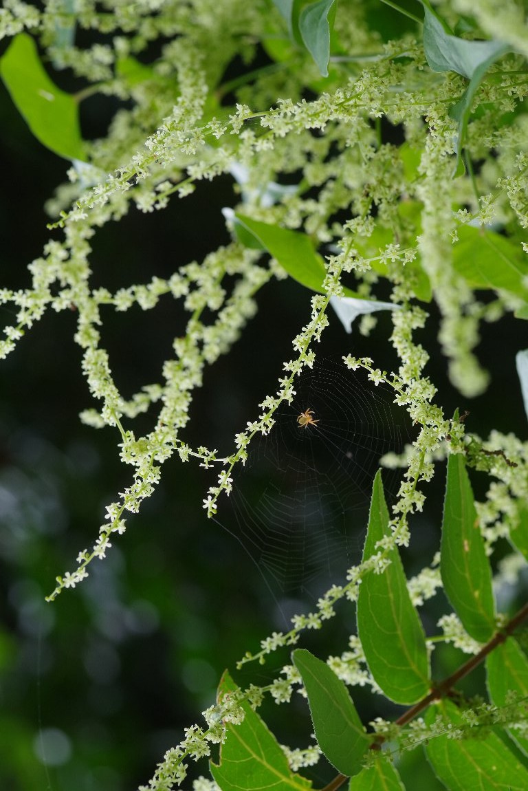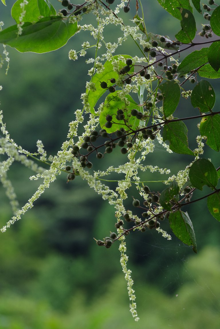 撮影雑記: 何か別の花を撮ろうと、ちょっと車を停めたのだったと思います。 ふと目をやると、ヤマノイモの仲間のつる草が、あまりに、高密度で、絡まっているのに、 気が付きました。 絵になるのか?ならないのか? とにかく、いろいろ撮ってみました。 うじゃうじゃ感がよくわかるような一枚が、上の写真です。 少し密度の低いところを、どう撮ろうかといろいろ見ていると、小さなクモがクモの巣を 張っているのに気が付きました。 ![]() 黒い実とのツーショット。これは、ウツギの実です。 ![]() いつもは、見かけても、カメラを向けることのない花でしたが、案外、おもしろく撮れました。 ところで、この花ですが、おそらくは、オニドコロと思います。 |