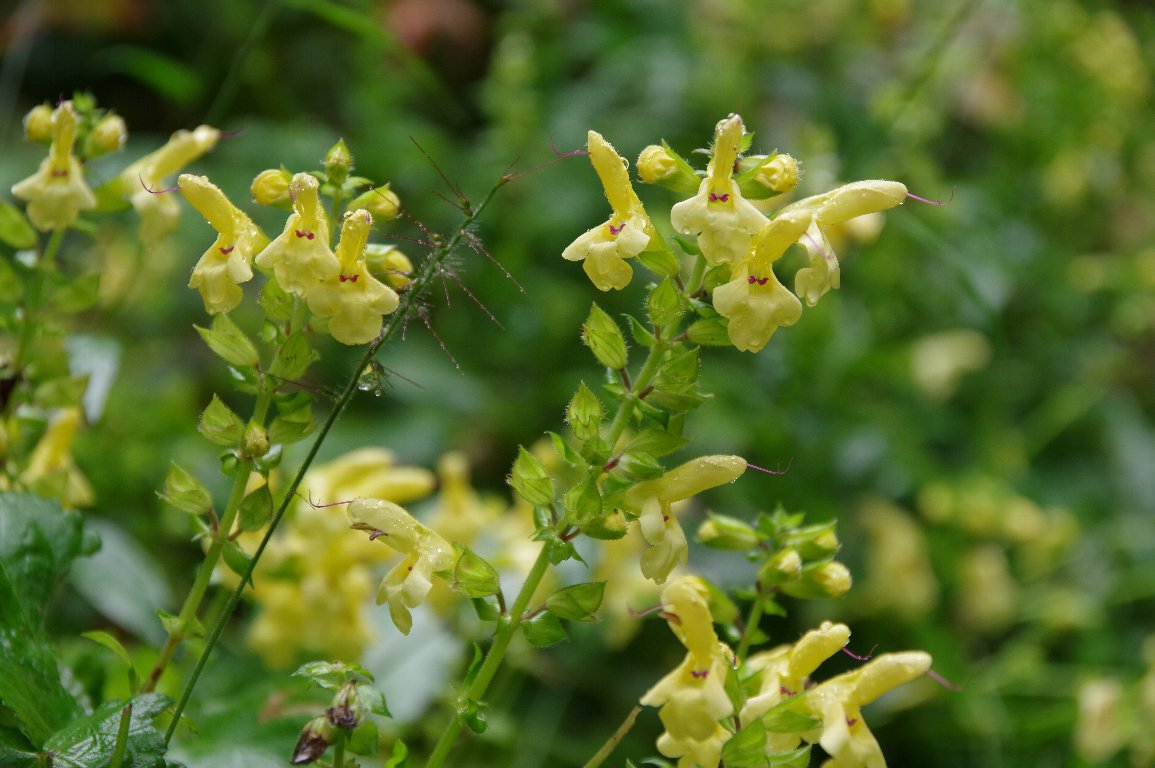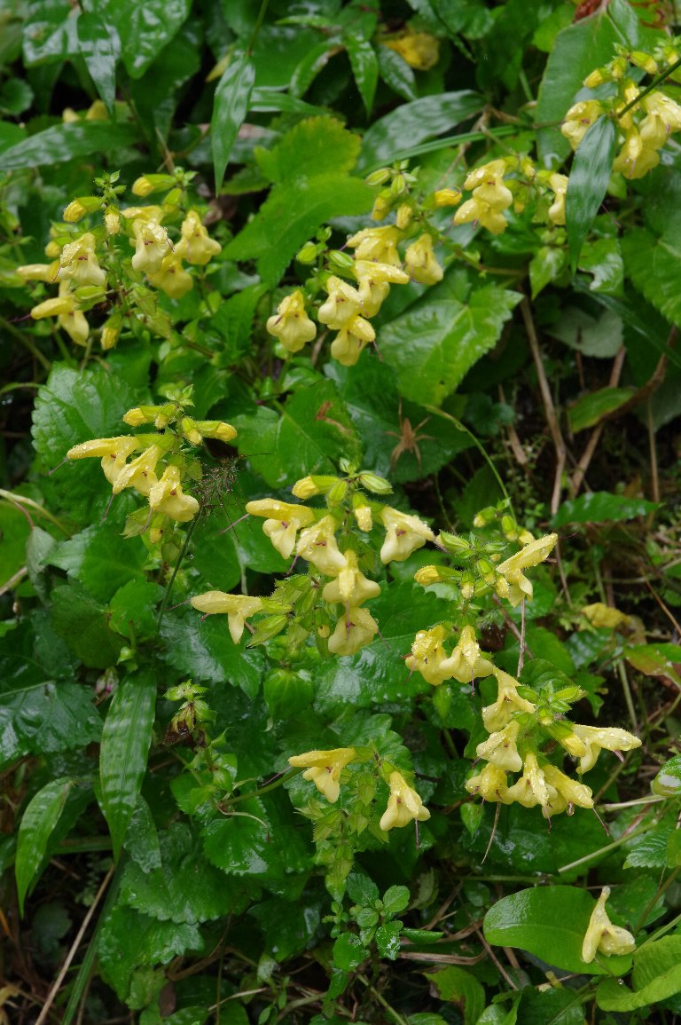 道端で咲き乱れるキバナアキギリに唖然とした。 車を走らせていると、ここにも、また、ここにも、群落を作って咲いている。 予想外の花に出会って、シャッターを切るのが楽しかった。 |