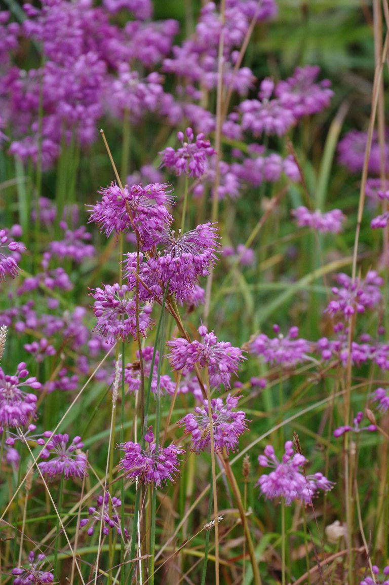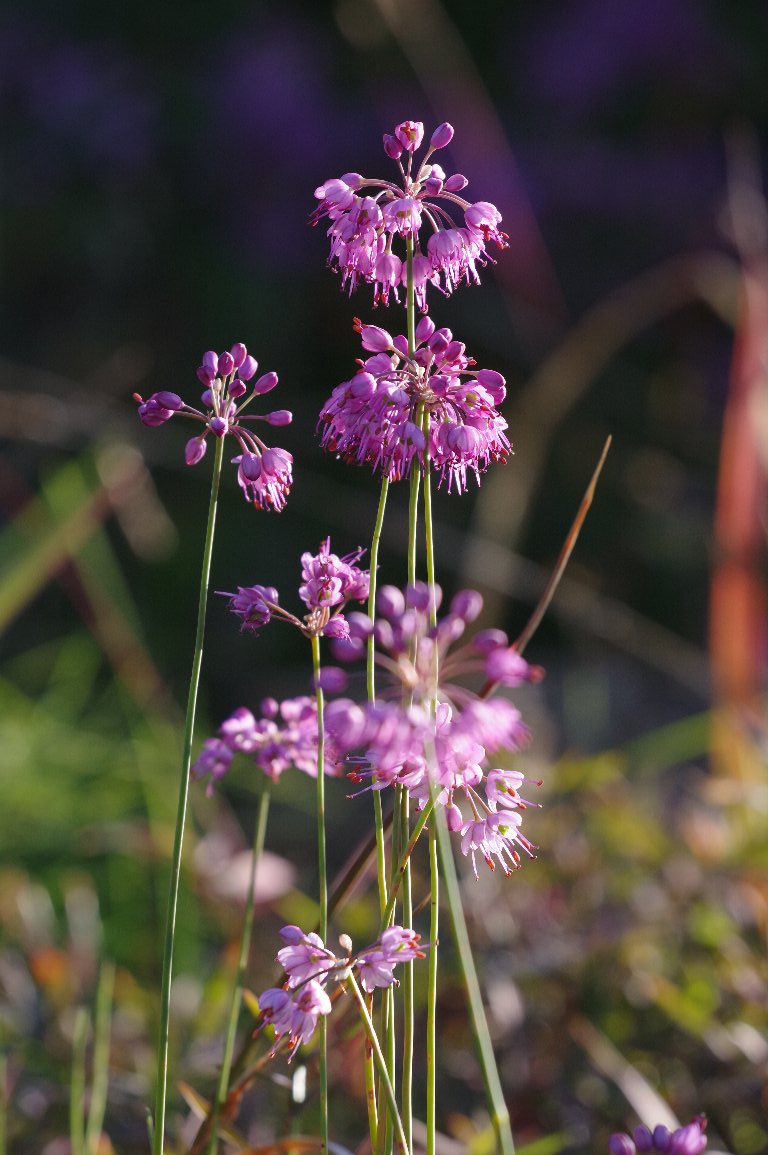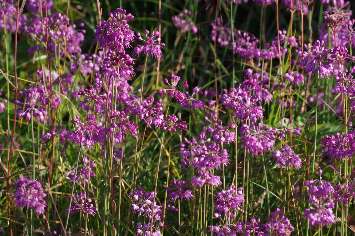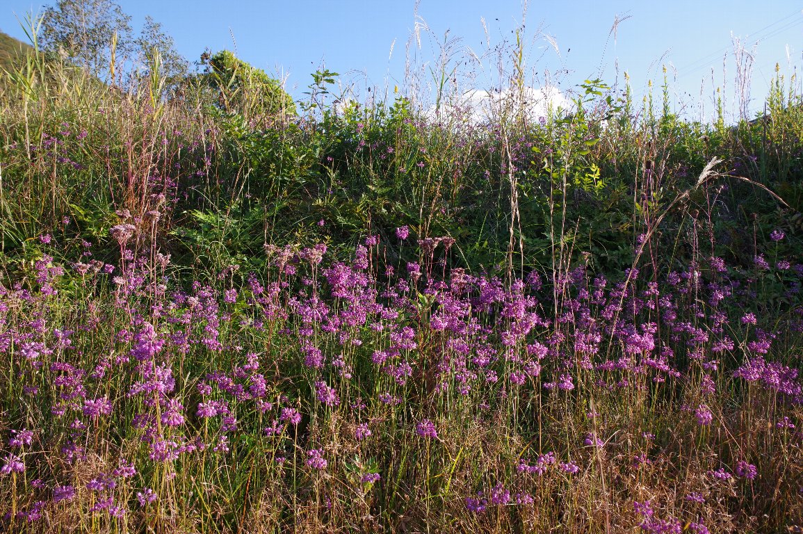 三田や篠山の里山を巡った時のいつもの帰り道、小さなため池の土手がピンクに染まっている? なんということ、物凄い密度のヤマラッキョウの群落だ。 山に陰ろうとする夕方の日差しと競争するように、写真を撮った。 |