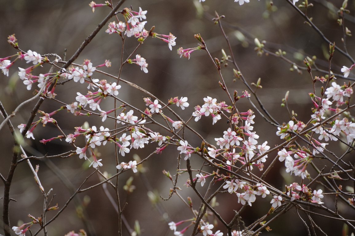 キンキマメザクラとは、よく名づけたものだと思う。 関西の山々に咲く、花も、木も小さめな桜。 ちょうど満開の花を咲かせていた。 |
