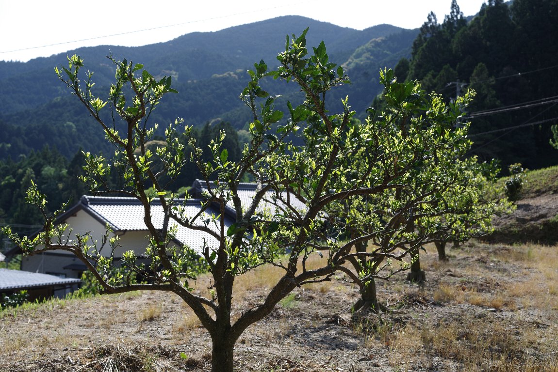 以前は、実家でミカン作りをしていて、出荷もしていた。 だが、ひどいシカの食害に遭ってからは、わずかに自家用に作るのみとなった。 それでもミカンは、変わらず白い花をつけ、実を生らせてくれる。 |
