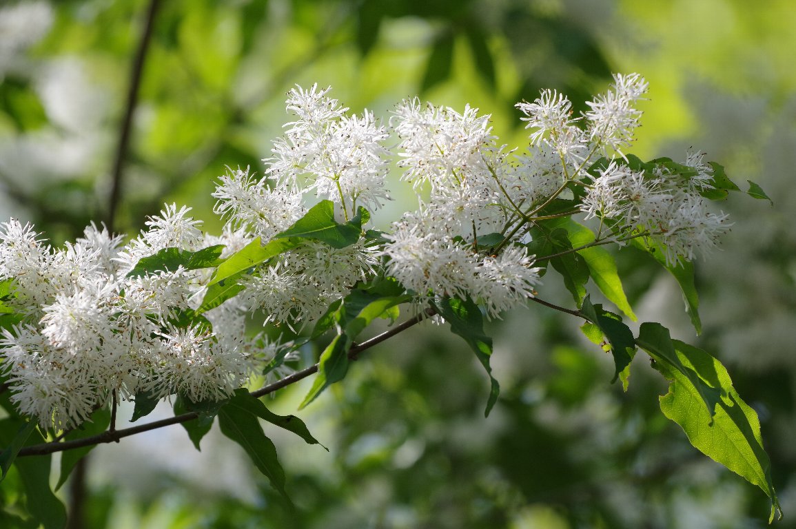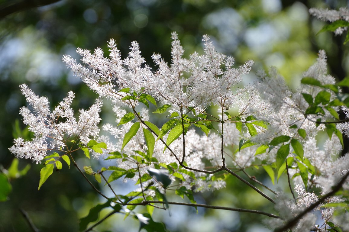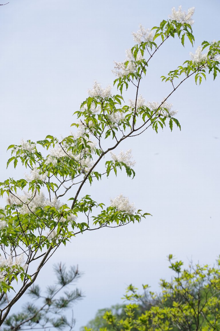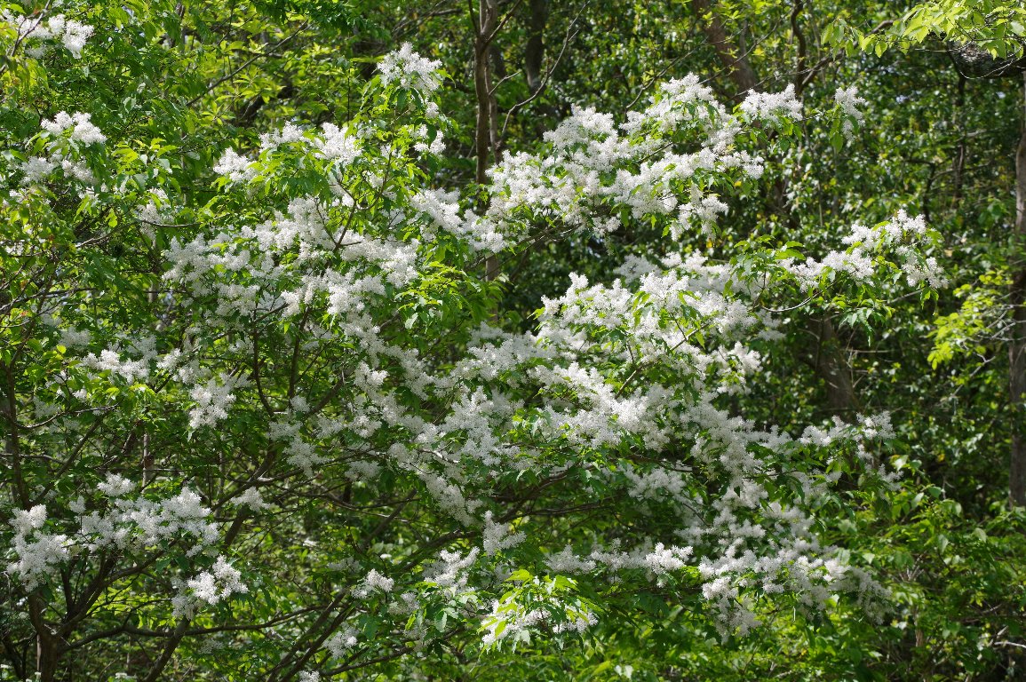 見上げると、木全体が、白いふわふわとした花に覆われていた。マルバアオダモだ。 爽やかな5月の風にふかれて、そよそよとそよいでいる。 いつまでも、見飽きることなく、何枚も何枚もシャッターを切っていた。 |