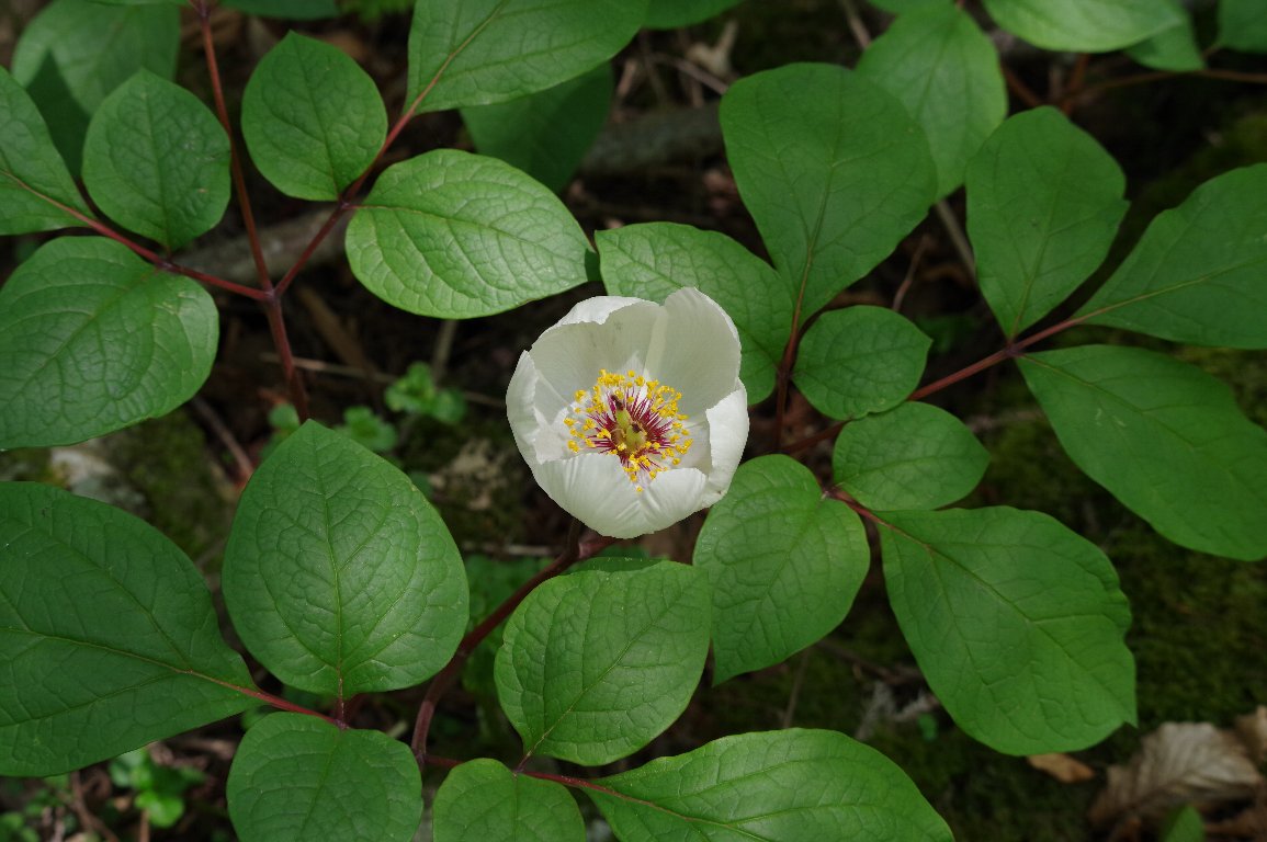 撮影雑記: ヤマシャクヤクが咲くという情報を得て、初めての山にやってきました。 登山口に車を停めて、谷筋の山道を登ってゆきます。 でも、なかなか、ヤマシャクヤクの姿がありません。本当に咲いているんだろうか? そう思いながらも急な斜面を歩いてゆくと、見上げた先に、やっと、白く輝く花がありました。 ![]() さらに少し登ると、予想以上の群生でした。 その様子をカメラに納めたいと思うのですが、登山道からは、角度は悪いし、木漏れ日に光ってしまって、 どうやっても写真に切り取れませんでした。 群落の一部です。これくらいが限界でした。 ![]() 四方に葉を広げて、真ん中に、大きな白い花を咲かせます。 何個体か写真に撮りましたが、花のしべもわかるように撮りたいので、どうしても、同じような構図に なってしまいますね。 ![]() |
