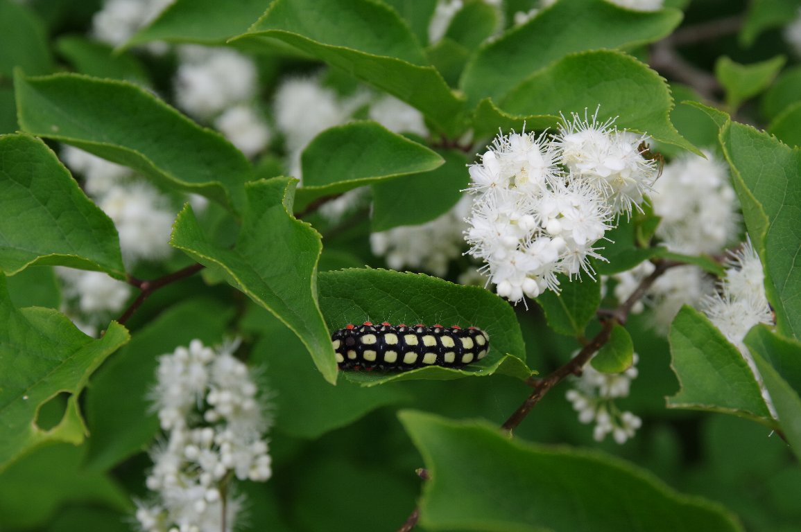 撮影雑記: 里山公園でヤマボウシの花を撮っていると、林の縁に、白い花をいっぱい付けた小さな木がありました。 おそらく、この年は、例年より花付きが良くて、目についたのだと思います。 サワフタギかクロミノニシゴリだろうと思って、写真だけは撮っておきました。 さて、花の二十四節気に載せようと、調べてみると、どちらでもなくて、タンナサワフタギのようです。 実が生ればはっきりするのですが、タンナサワフタギとしておきます。 アップの写真です。 花だけでは、種類の見分けが難しいんですよね。 ![]() 鮮やかな色のイモムシがいました。 シロシタホタルガという、蛾の幼虫のようです。 ![]() どんな蛾かは、名前で検索すれば、すぐ出てきます。 黒くて、羽に白い帯模様がある小さな蛾です。たぶん、どこかで見たことあるんじゃないでしょうか。 |