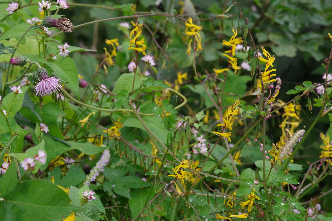撮影雑記: キケマンの仲間は春に咲くのに、秋に咲いているこのキケマンは何だろう? と思って、とにかく、写真に撮っておきました。 後で調べたら、ナガミノツルキケマンという種類のようです。 道端で、他の秋の花、ナギナタコウジュや、ミゾソバや、アザミと一緒に、咲いていました。 ![]() ツルキケマンの名の通り、なよなよとした茎が絡むように伸びていて、なかなか、うまい具合に 撮れません。 キケマンのところだけ、なんとか切り取ってみました。 ![]() |