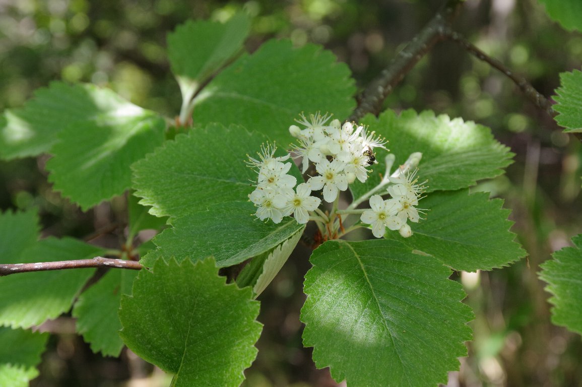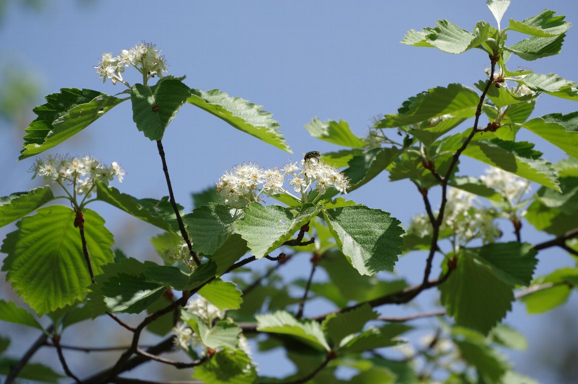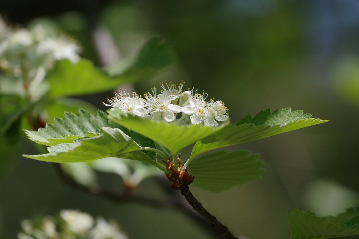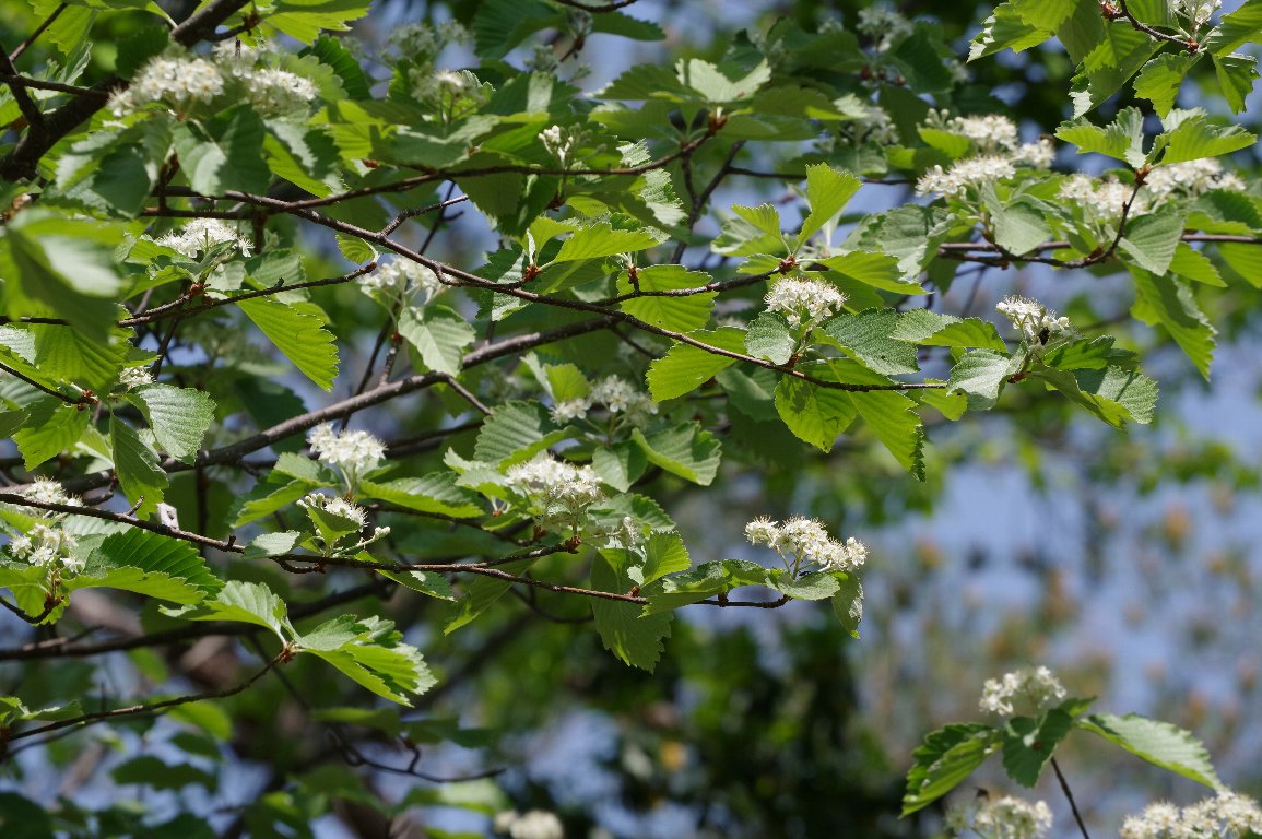 コロナ禍で遠くに行けなくなった四月、久しぶりに、自宅そばの山をハイキング。 すると、思いがけずウラジロノキを発見。 花の咲く頃を見計らって再度訪れ、初めて、小さな白い花を見ることができた。 |
