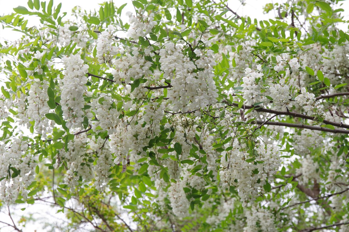ハリエンジュの白い花が、そこかしこに咲いていた。 フジに似た花だが、こちらは外来種。でも、あちこちで帰化している。 すっかり、日本の晩春の景色に馴染んでいた。 |