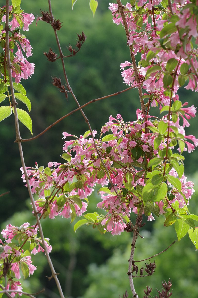 どうかしたのか?と言いたいほど、全身花だらけのタニウツギが佇んでいた。 枝ひとつとっても、たわわに花が咲いていた。 |