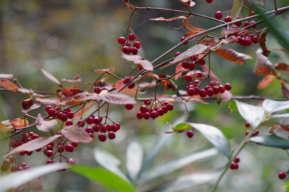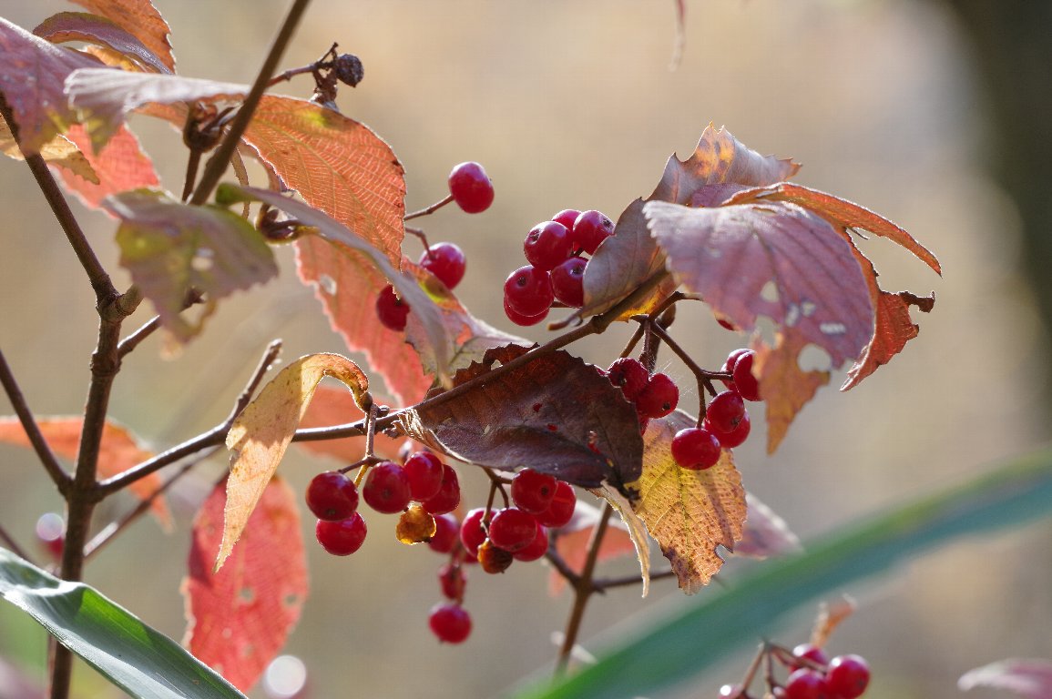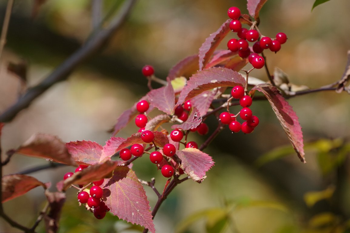 この年はコバノガマズミの花付きが良かったので、実の生りもよいようだ。 雑木林を散策すると、あっちでも、こっちでも、真っ赤な実が出迎えてくれた。 色づいた葉をバックに、キラキラ輝く実が美しい。 |